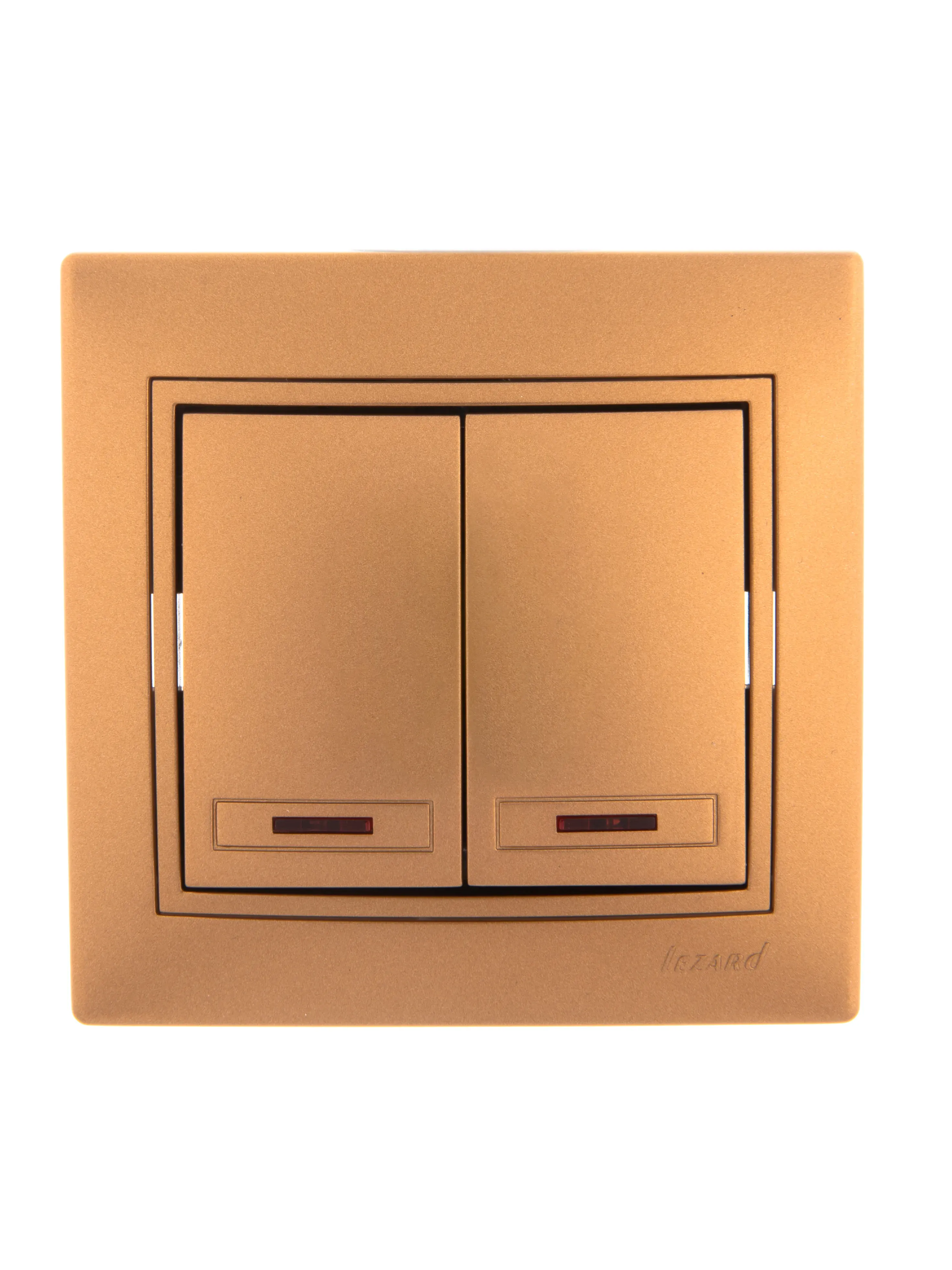 MIRA Выключатель двухклавишный с подсветкой металлик золото Lezard 701-1313-112 10шт