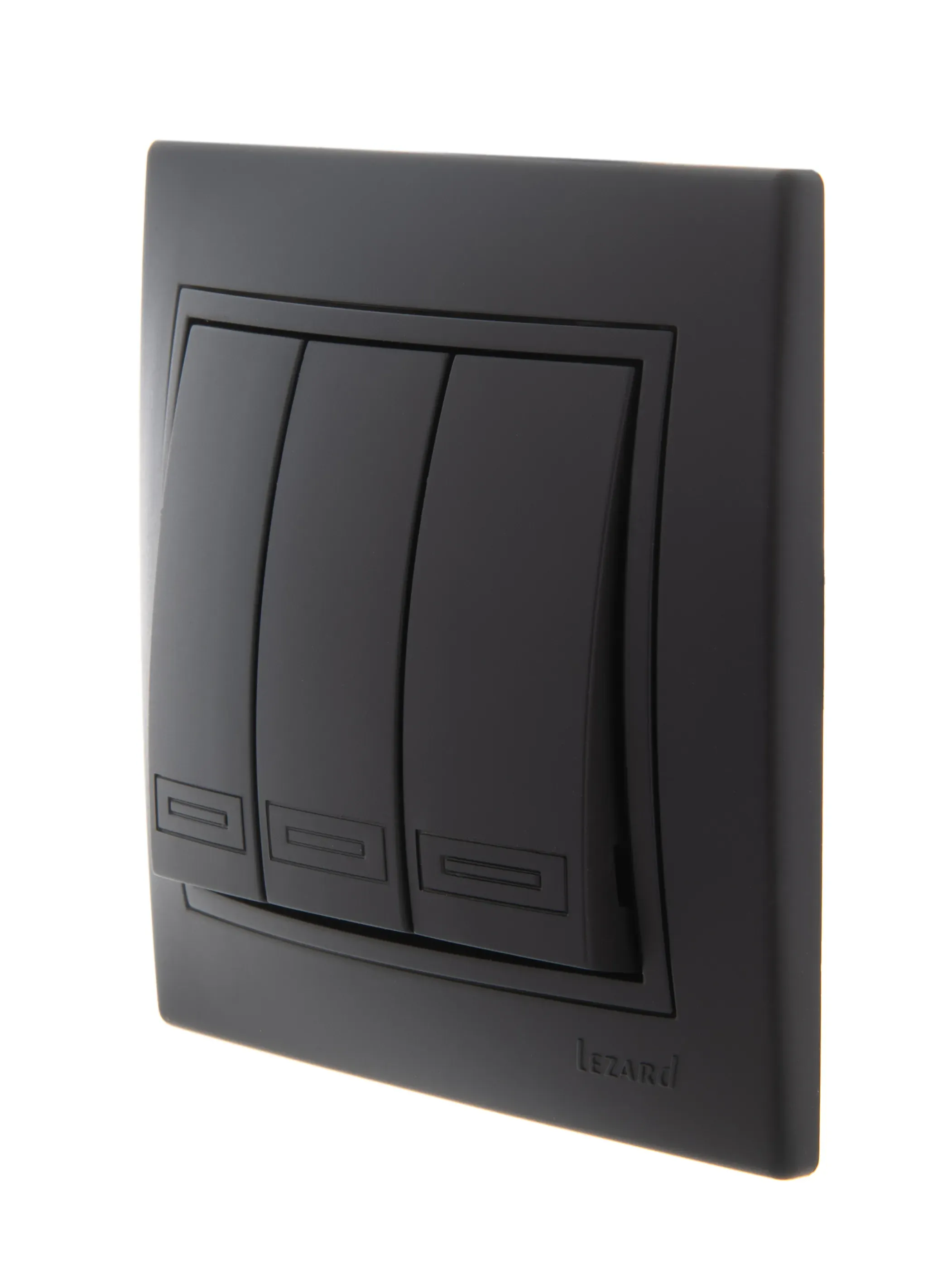 MIRA Выключатель тройной чёрный бархат со вставкой (10шт/120шт) Lezard 701-4242-109