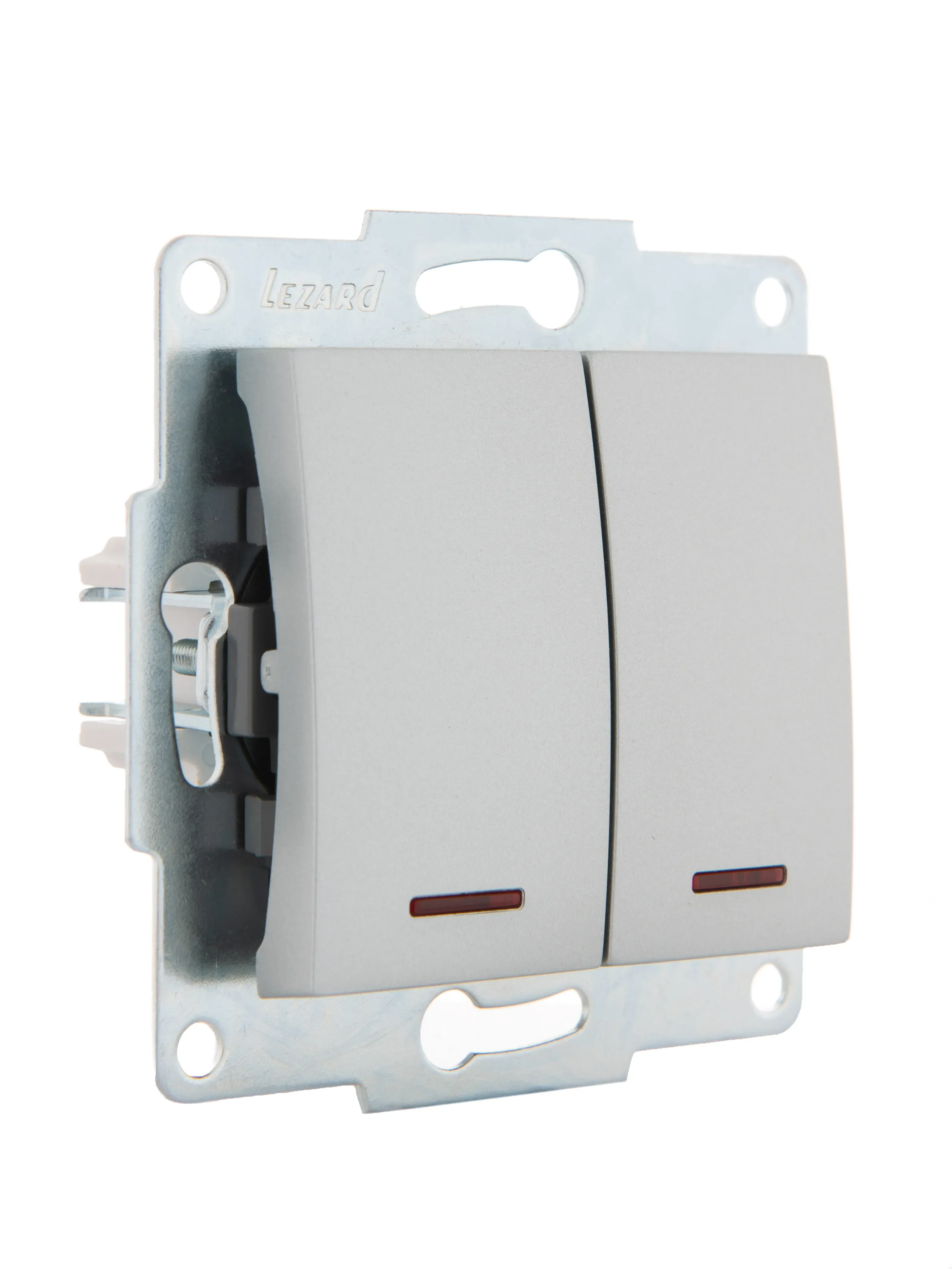 KARINA Выключатель двойной с подсветкой матовое серебро (10шт/120шт) Lezard 707-4388-112