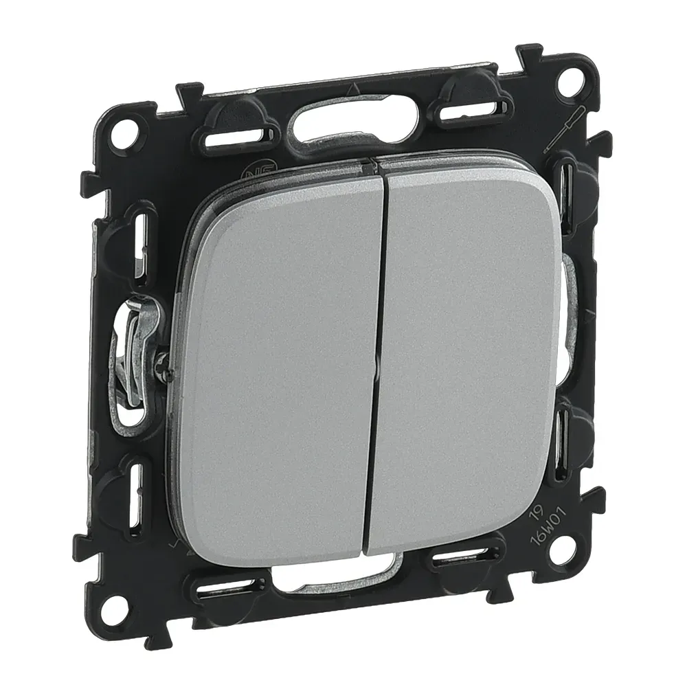 Valena ALLURE Выключатель двухклавишный 10А 250В с лицевой панелью Безвинтовые зажимы Алюминий LEGRAND 752905