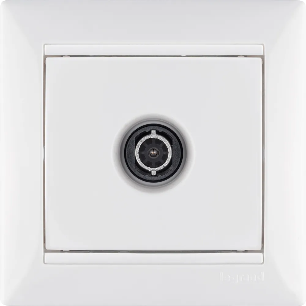 Розетка TV (телевизионная) - Legrand Valena - \'\'звезда\'\' - белый. Используется для подключения одного ТВ приемника к антенне, а также для организации телевизионной сети по схеме \'\'звезда\'\', когда к каждому телевизору прокладывается своя линия от источника сигнала.