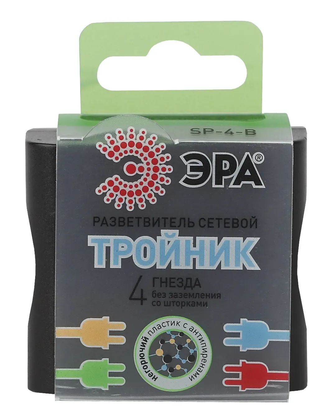 Разветвитель электрический Эра SP-4-B без заземления, 4 розетки, черный. Если в Вашем доме недостаточно розеток, чтобы одновременно подключить несколько электроприборов, то тройник марки Эра станет Вашим надежным помощником. Электрический разветвитель рассчитан на максимальную мощность 16А/3500Вт. Корпус выполнен из ударопрочного и негорючего пластика (поликарбонат). Модель тройника на 16А позволяет подключить мощные бытовые приборы общей нагрузкой до 3500Вт. Не бойтесь включить чайник, обогреватель или микроволновку. Дизайн разработан в России командой Эра Style.