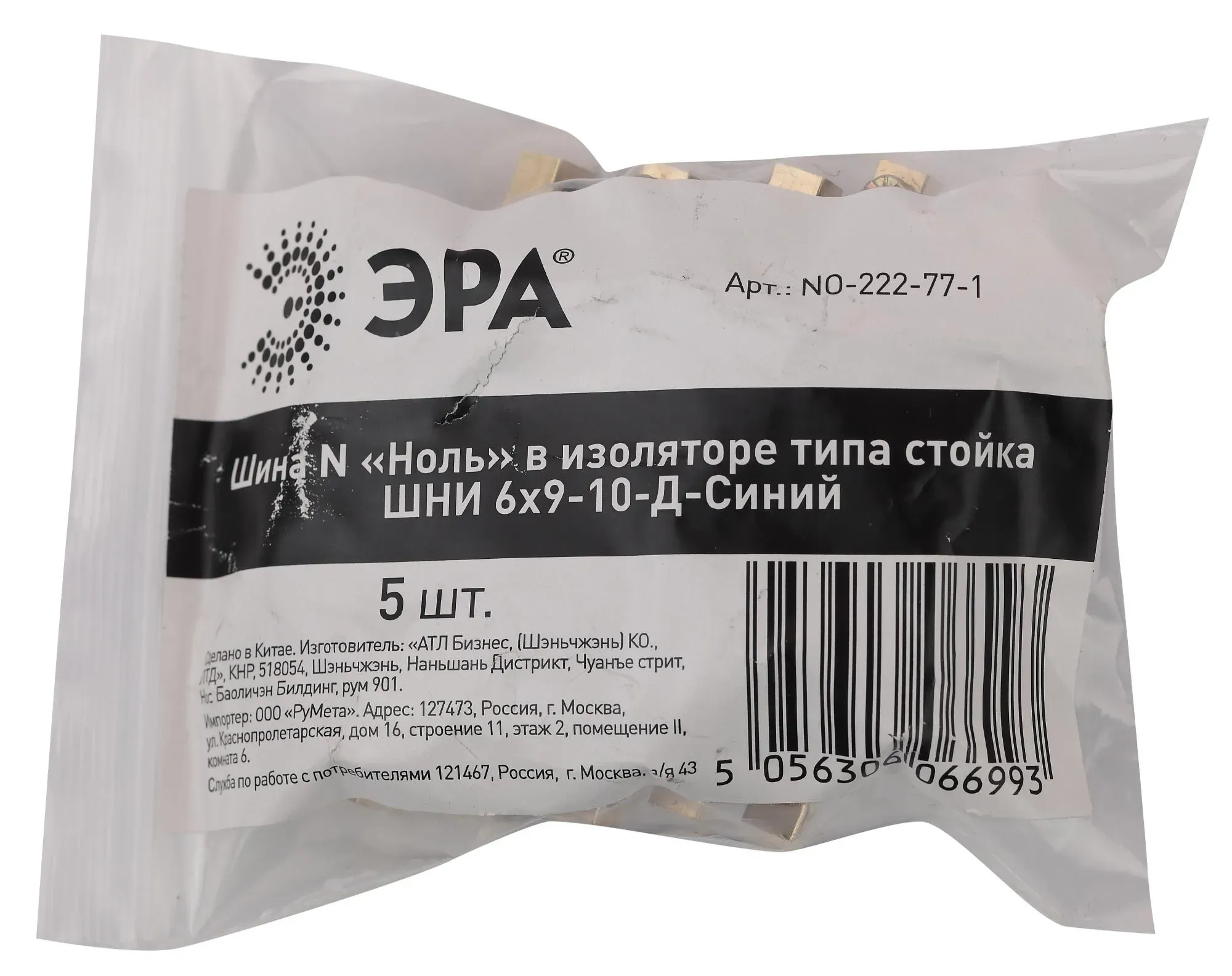 Шина N Ноль в изоляторе типа стойка ШНИ 6х9-10-Д-Синий ЭРА Б0044125