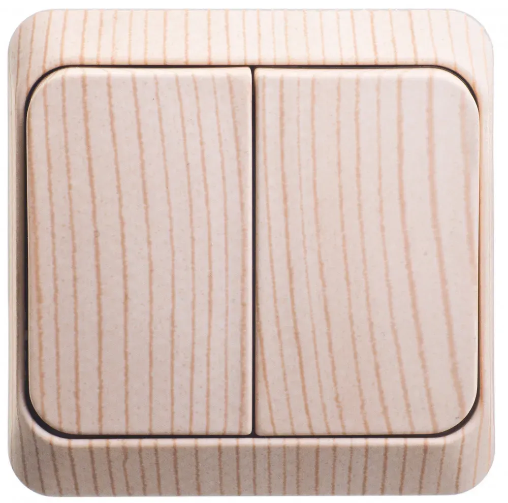 ЭТЮД Выключатель двухклавишный наружный с подсветкой Сосна SE (Потенциал) BA10-006D