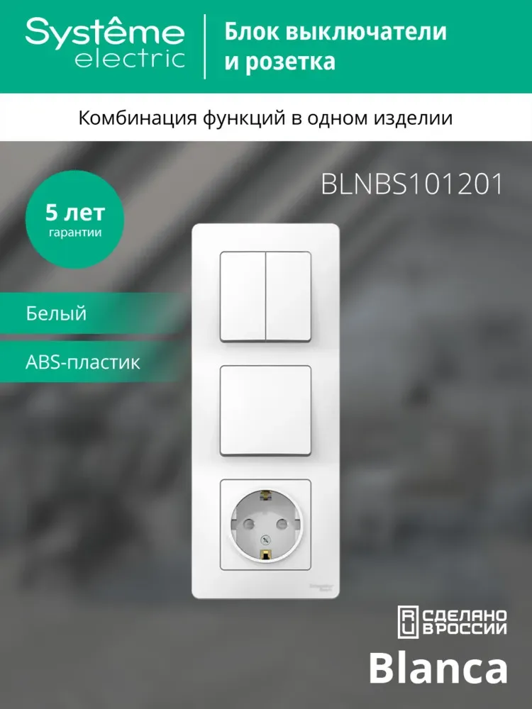 Отзывы о BLANCA скрытой установки блок: розет з/к шт 16А, 250В+выкл 1кл.с подсв+выкл 2кл.белый SE (Потенциал) BLNBS101201 )