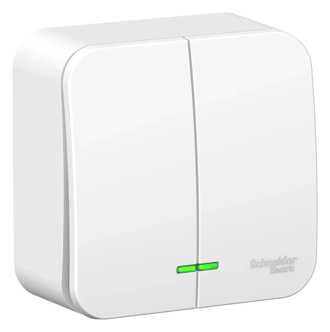 Выключатель Systeme Electric (ранее Schneider Electric) BLANCA (белый, открытой установки) с изолирующей пластиной двухклавишный предназначен для сетей до 250В, на ток до 10А. Подсветка делает его легко находимым в отсутствие освещения. Двухклавишный выключатель позволяет управлять двумя источниками света из одной точки.