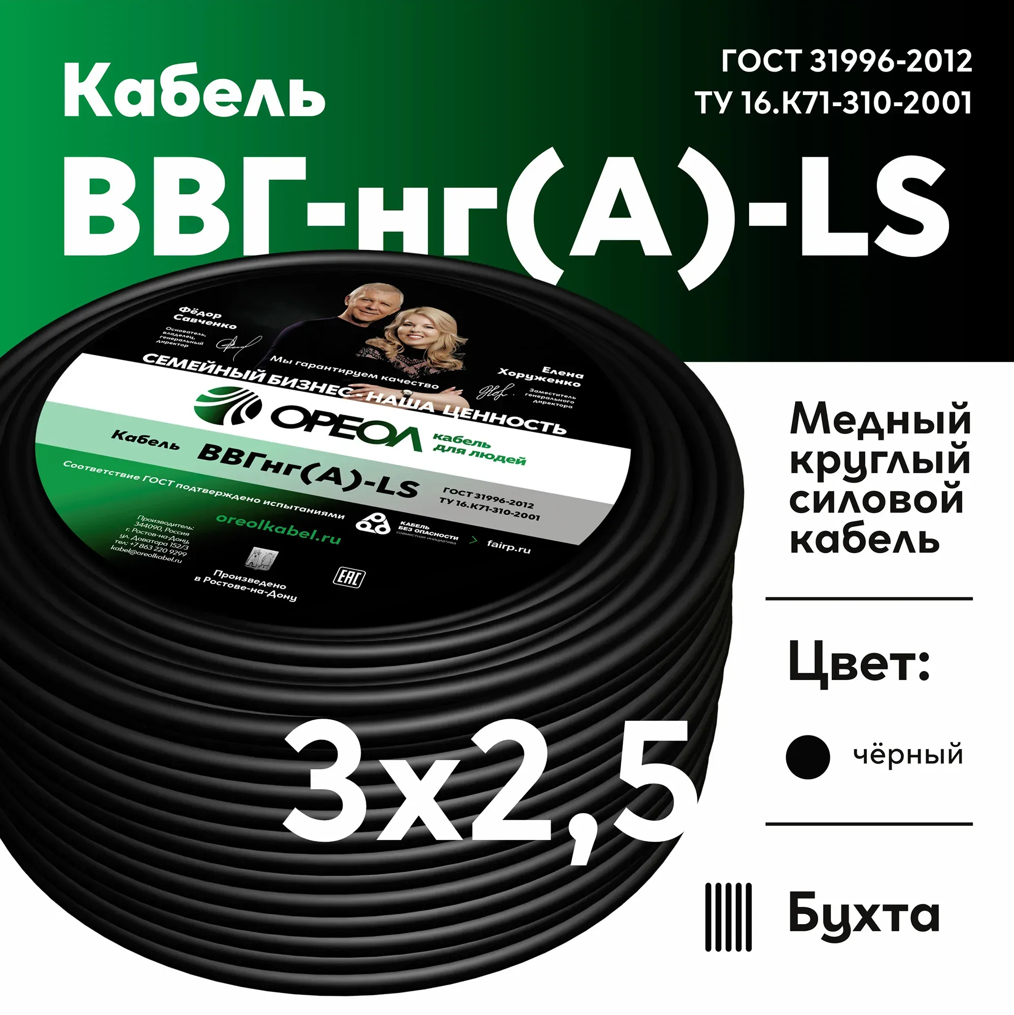 Отзывы о Кабель ВВГнг-LS 3х2,5 Ореол 3656554 )
