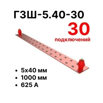 — | Главная шина заземления медная 5x40 мм, 30 подключений, 1000 мм, ток 625 А; |