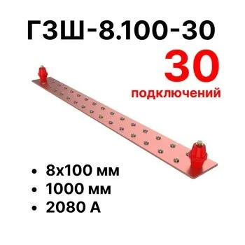 | — | Главная шина заземления медная 8х100 мм, 30 подключений, 1000 мм, ток 2080 А; |