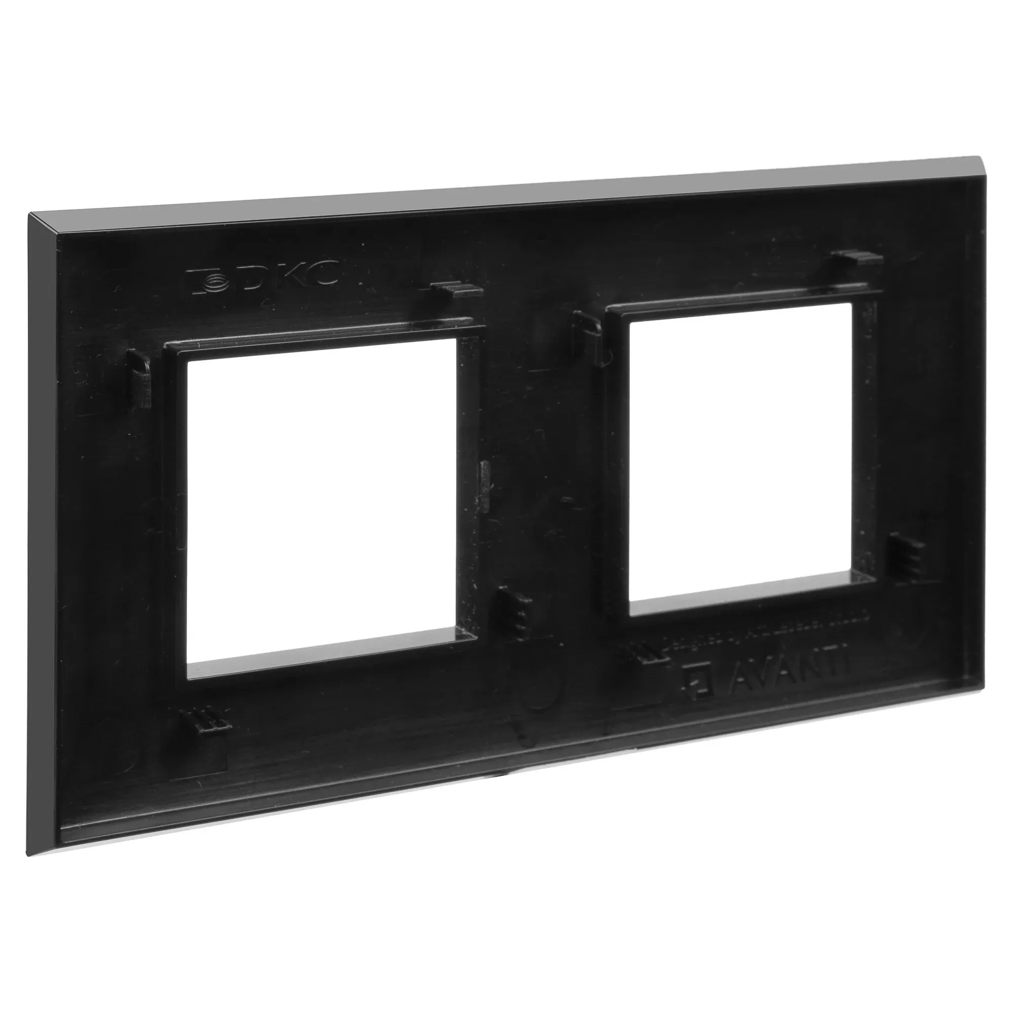 Декоративные рамки серии \'Avanti\' используются для эстетичного оформления ЭУИ этой же серии. Цвет \'Черный квадрат\' занимает в линейке \'Avanti\' особое место. Он воплощает в себе традиции русского авангарда – периода, когда художники стремились к минимализму, сокращая средства художественной выразительности до двух главных элементов – цвета и формы. Глубокий, таинственный, строгий и стильный оттенок \'Черный квадрат\' – это сдержанная элегантность в вашем интерьере. Рамка имеет 2 места под электроустановочные изделия (максимальная вместимость – 4 модуля), может размещаться как горизонтально, так и вертикально. Габаритные размеры- 160х90 мм. Материал – термопласт.