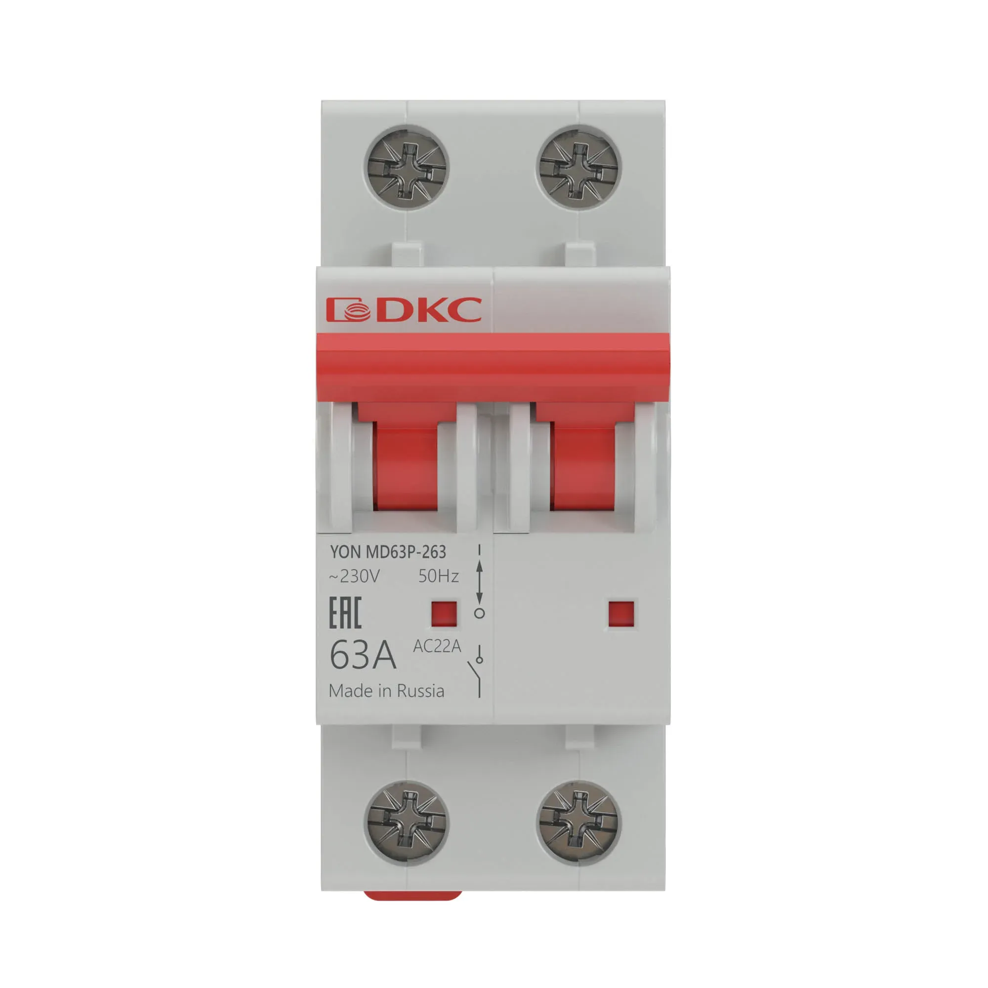 Модульный двухполюсный выключатель нагрузки YON MD63P номиналом 63 A предназначен для применения в электрических цепях напряжением до 400 В переменного тока частоты 50 Гц, проведения тока в нормальном режиме и оперативного включения и отключения указанных цепей.