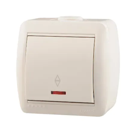Переключатель одноклавишный наружный с изоляционной пластиной с индикацией дуб 16А HEGEL ВА16-164-05