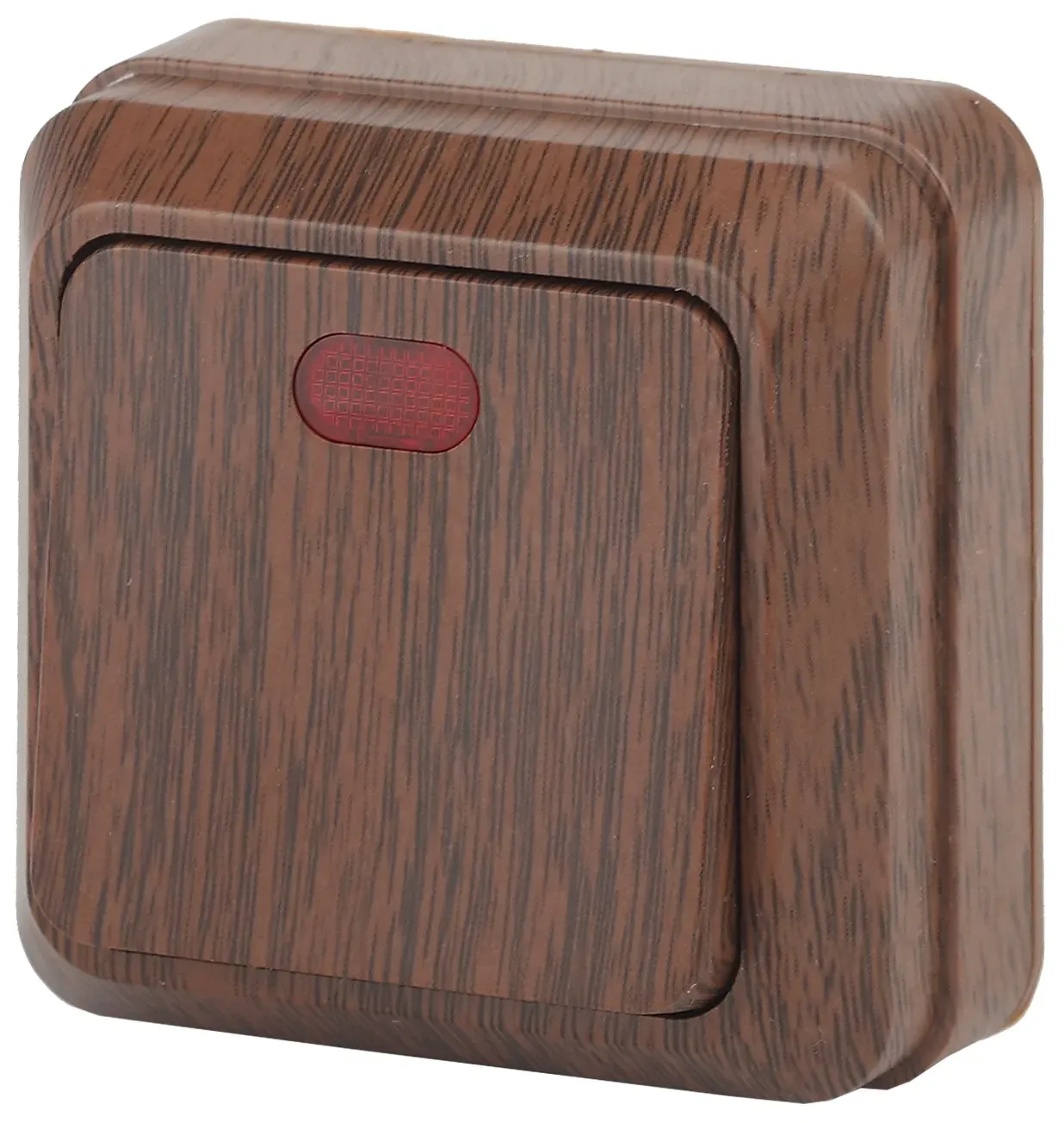 Выключатель Intro Quadro 2-102-10 одноклавишный с подсветкой, 10А-250В, IP20, ОУ, венге ЭРА Б0053745
