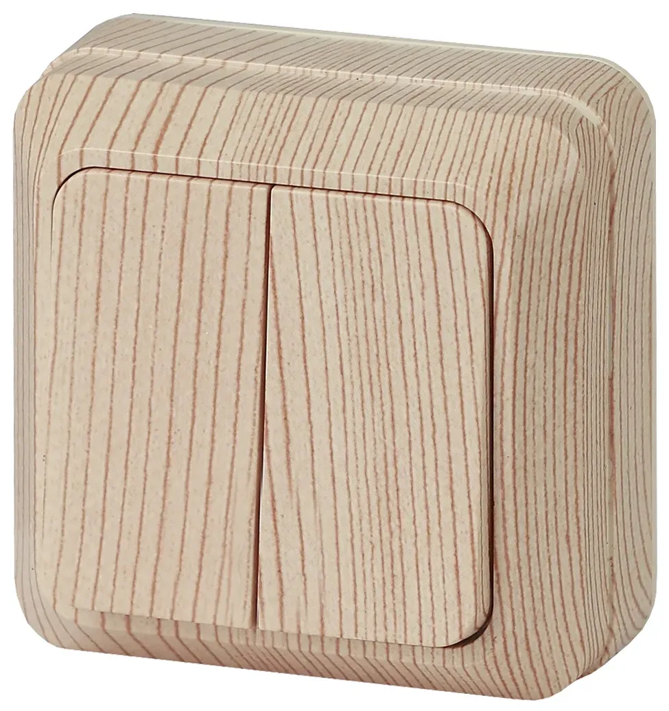 Выключатель Intro Quadro 2-105-10 двухклавишный с подсветкой, 10А-250В, IP20, ОУ, венге ЭРА Б0053770