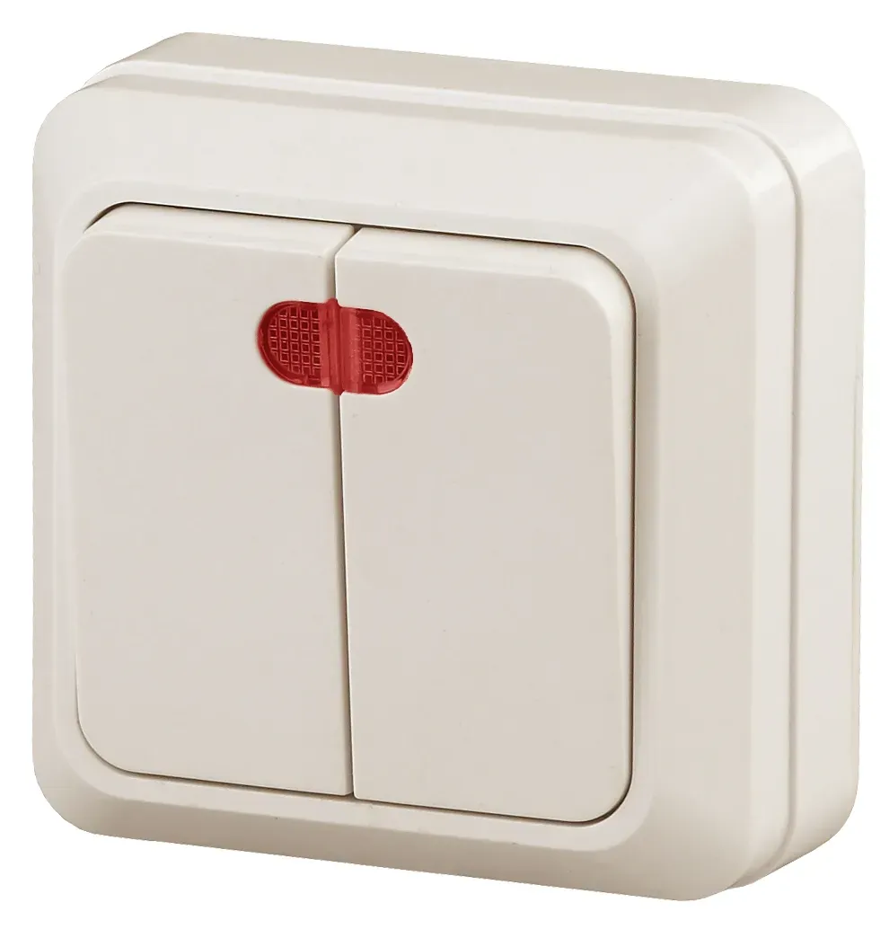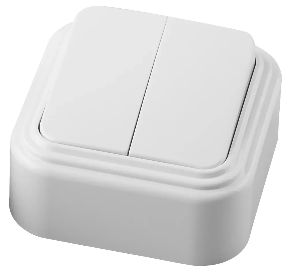 Выключатель Intro Quadro 2-105-01 двухклавишный с подсветкой, 10А-250В, IP20, ОУ, белый ЭРА Б0053766