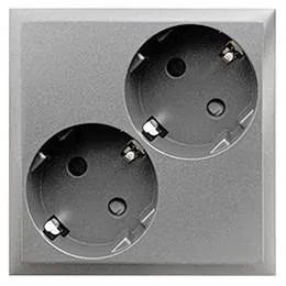 Розетка двойная с з/к, со шторками (серебристый металлик) LK80