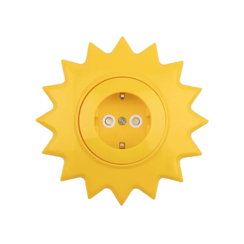Розетка одноместная KRANZ HAPPY Солнце скрытой установки заземл и шторками, желтая REXANT KR-78-0813