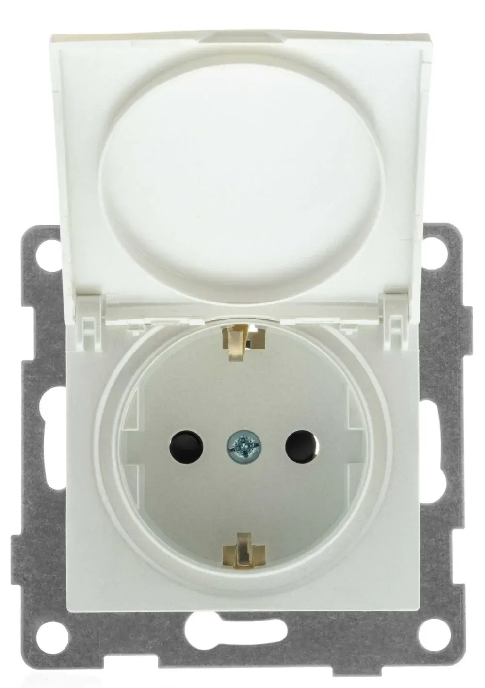 Розетка 2P+E Schuko со шторками с крышкой, 16А-250В, Эра Elegance, алюминий, 14-2103-03 ЭРА Б0034280