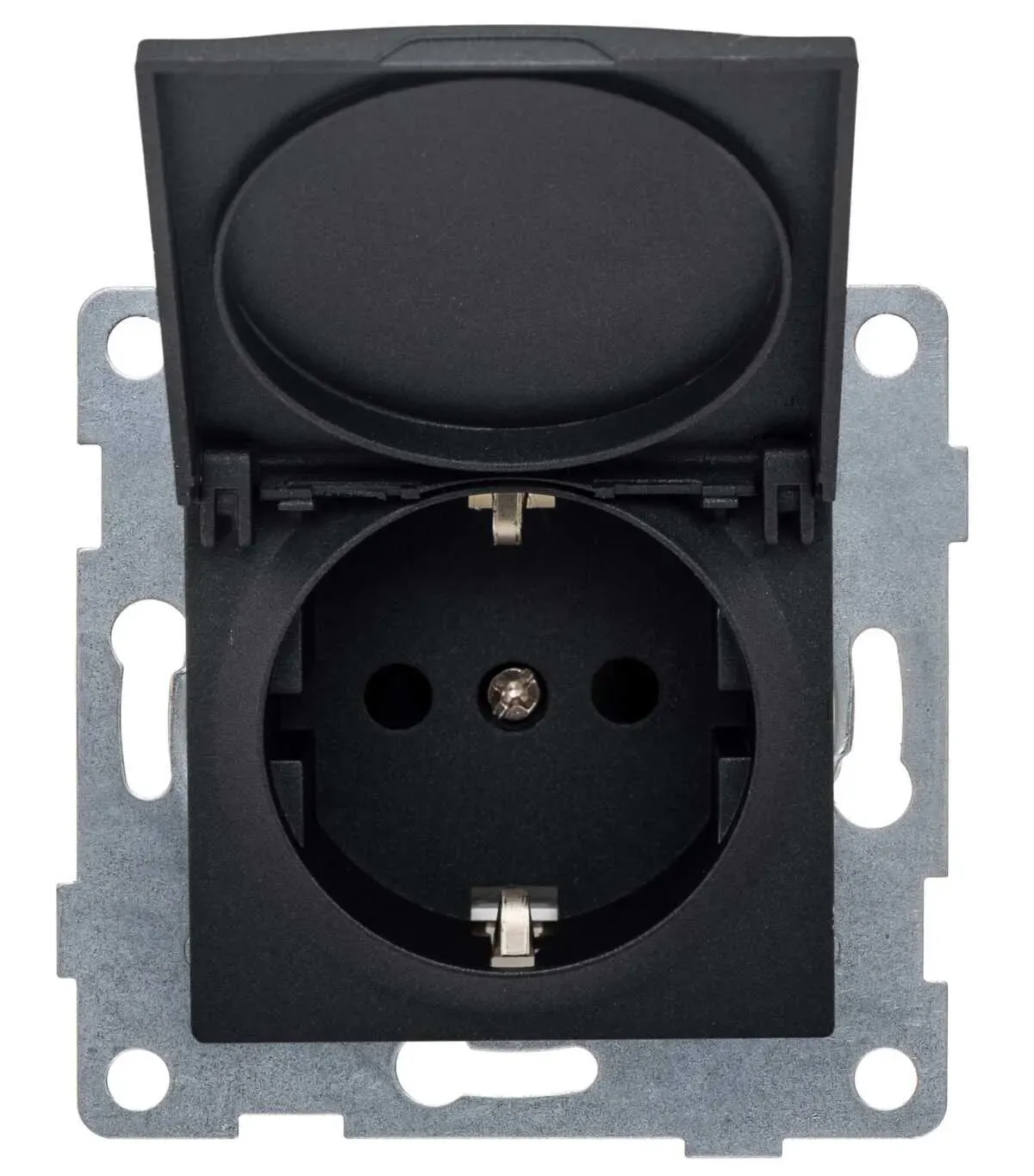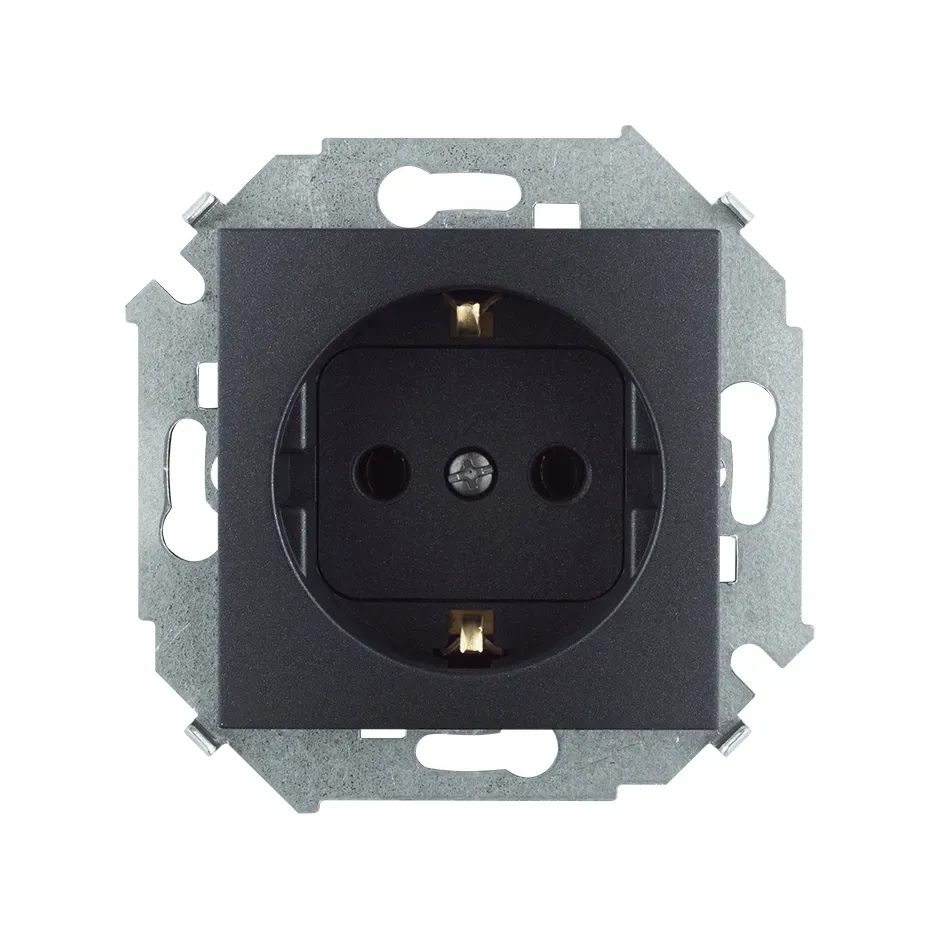 Розетка 2P+E Schuko со шторками с крышкой, 16А-250В, Эра Elegance, антрацит, 14-2103-05 ЭРА Б0034282