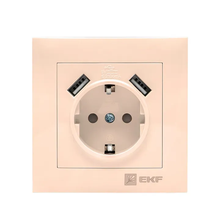 Розетка Intro Accent 6-410-01 P+E Schuko со шторками, 16А-250В + 2хUSB, IP20, СУ, белый ЭРА Б0063689