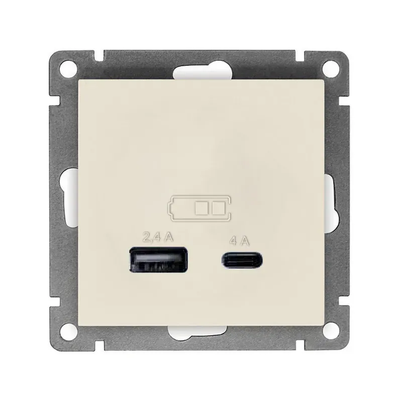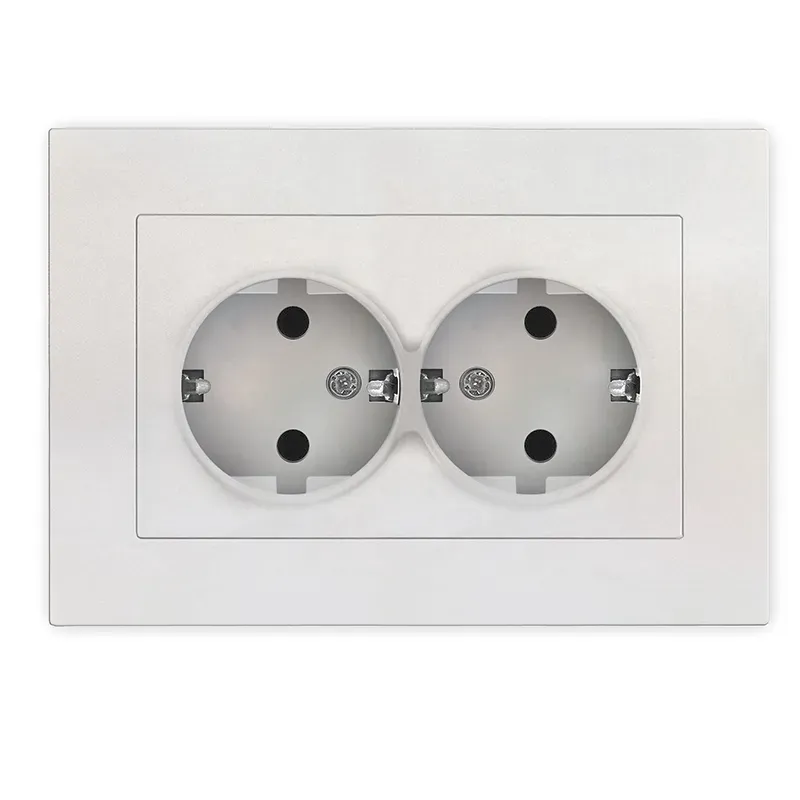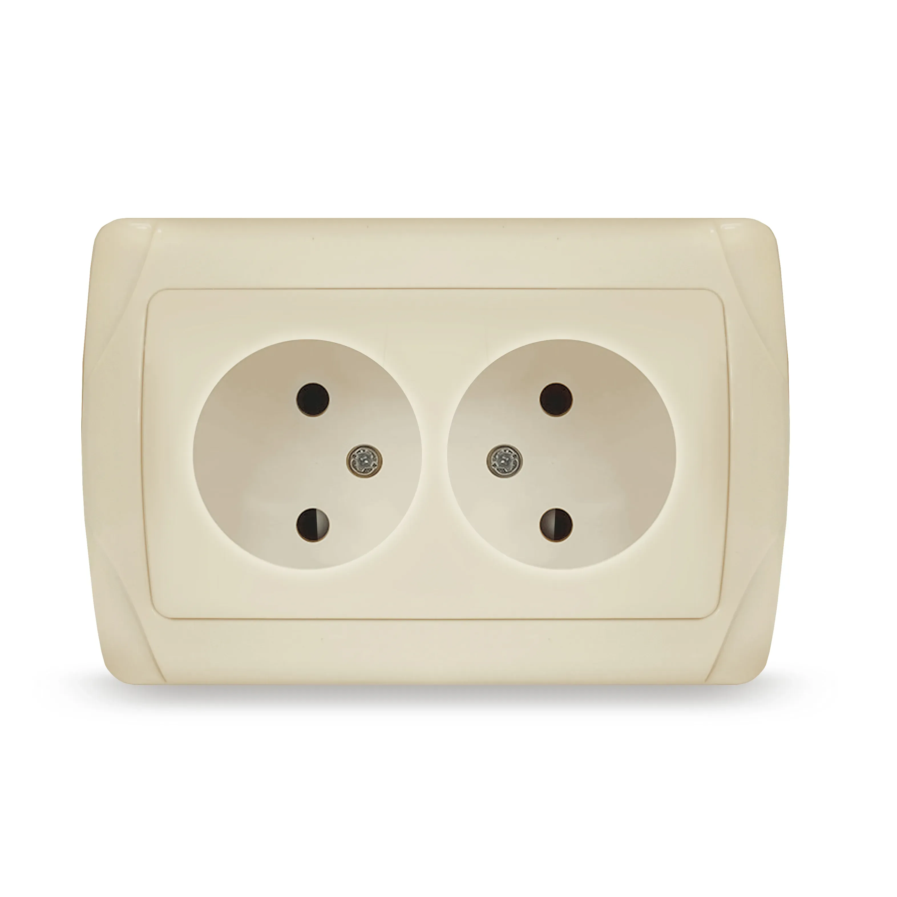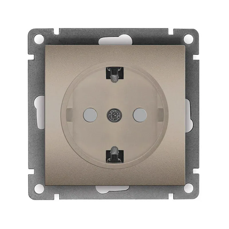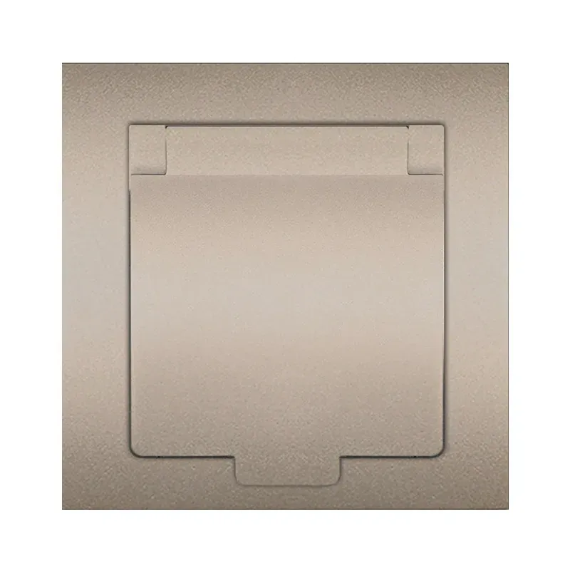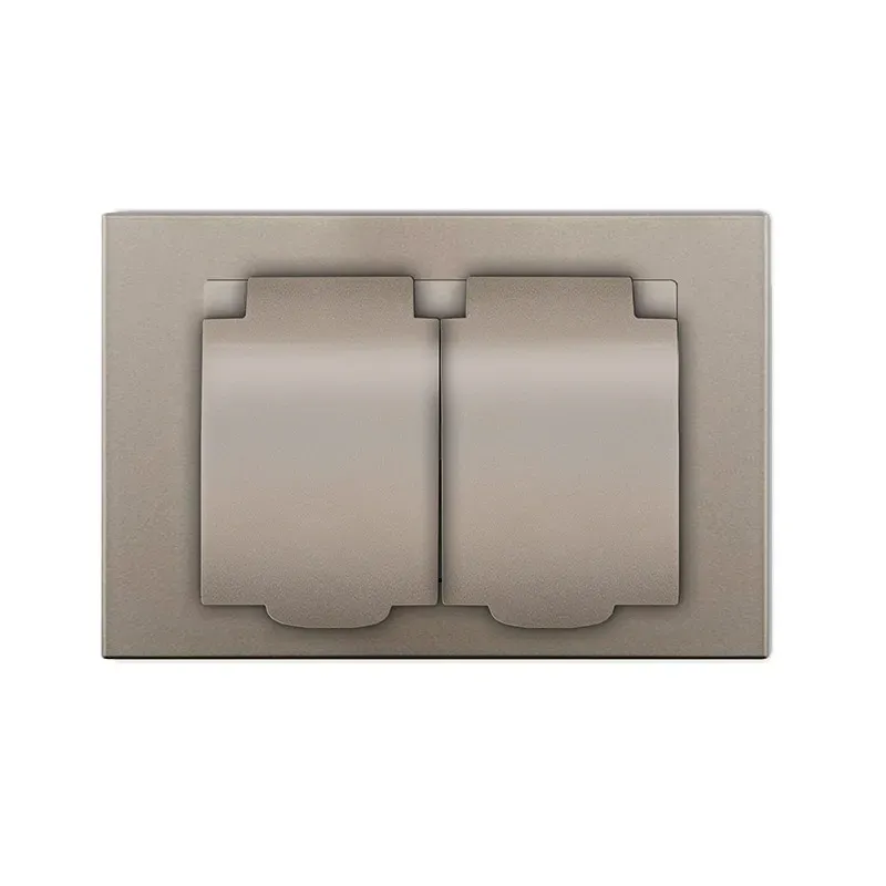 Розетка двухместная серия Афина с/з с крышкой, с/у, 16А, 220В, шампань (еврослот) Универсал A0031-Br