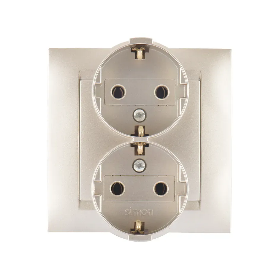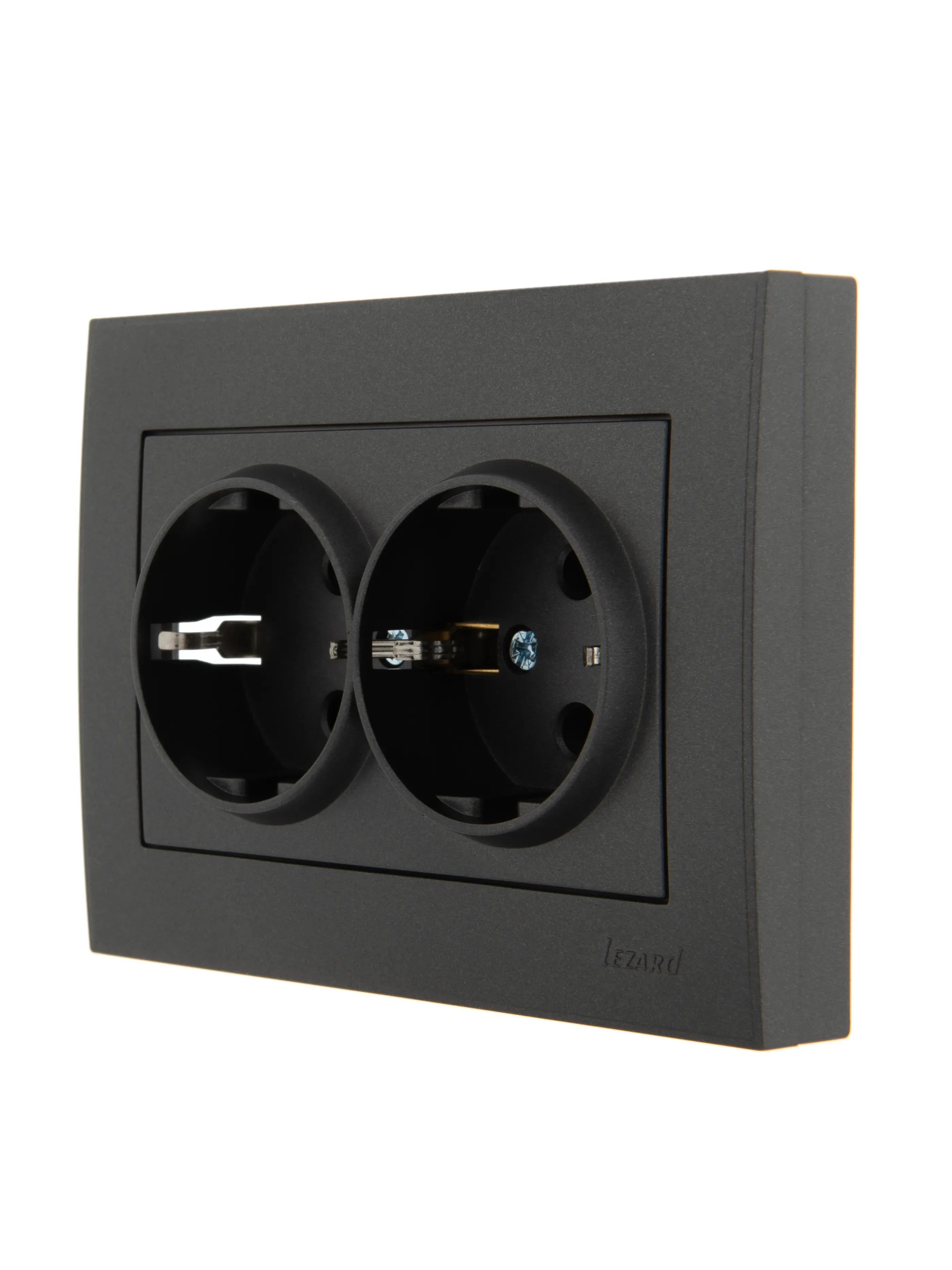 Мира Розетка двойная с заземлением керамика жемчужно-белый перламутр со вставкой Lezard 701-3030-127