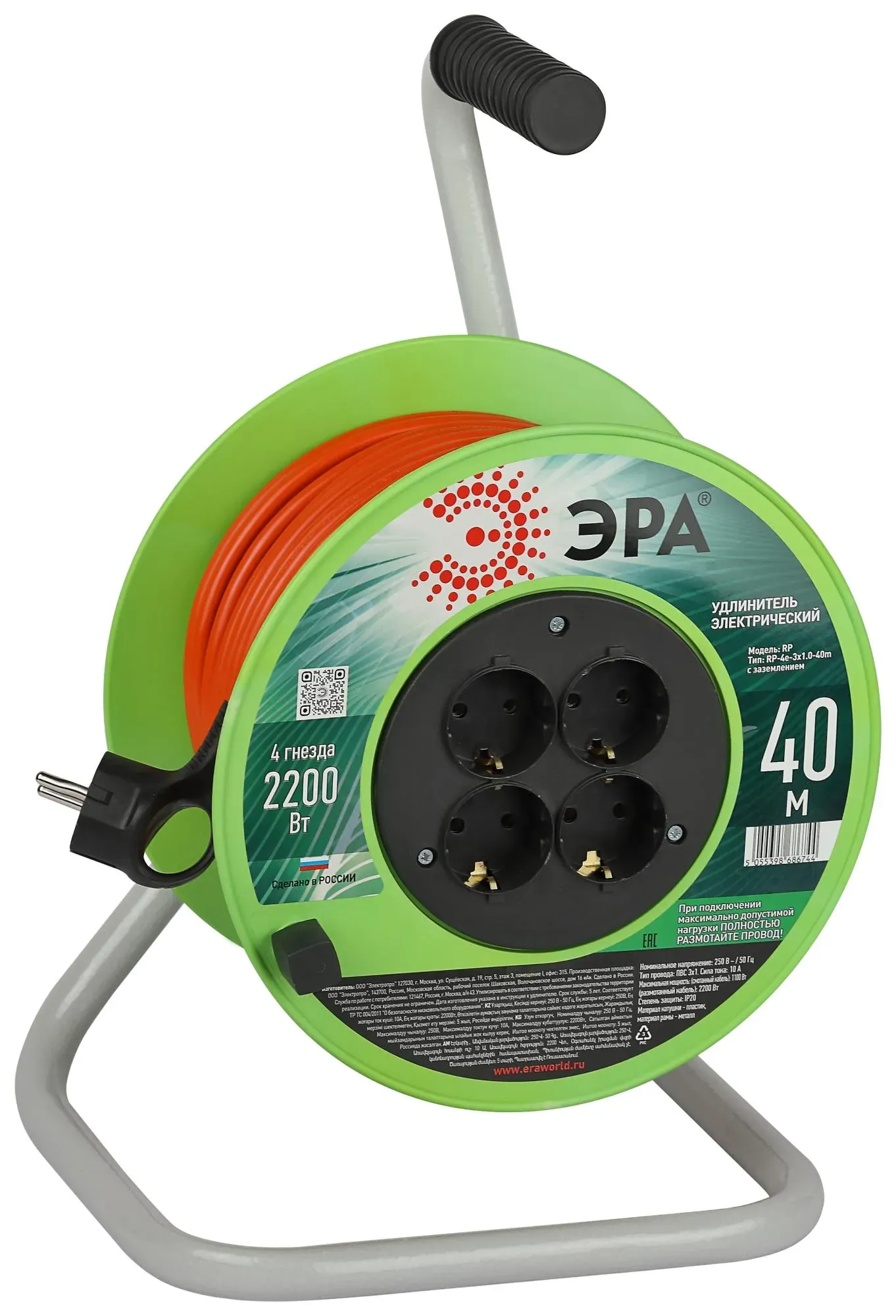 Удлинитель на рамке 'Зевс 2.0' 40м с заземлением ПВС 3x1.0 16А/3.5кВт PROxima EKF USRB02-16-310-1-40
