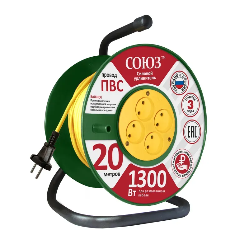 Удлинитель бытовой ТМ Союз 2200 Вт с заземлением с выключателем 3 гнезда ПВС 10м Универсал 481S-7310
