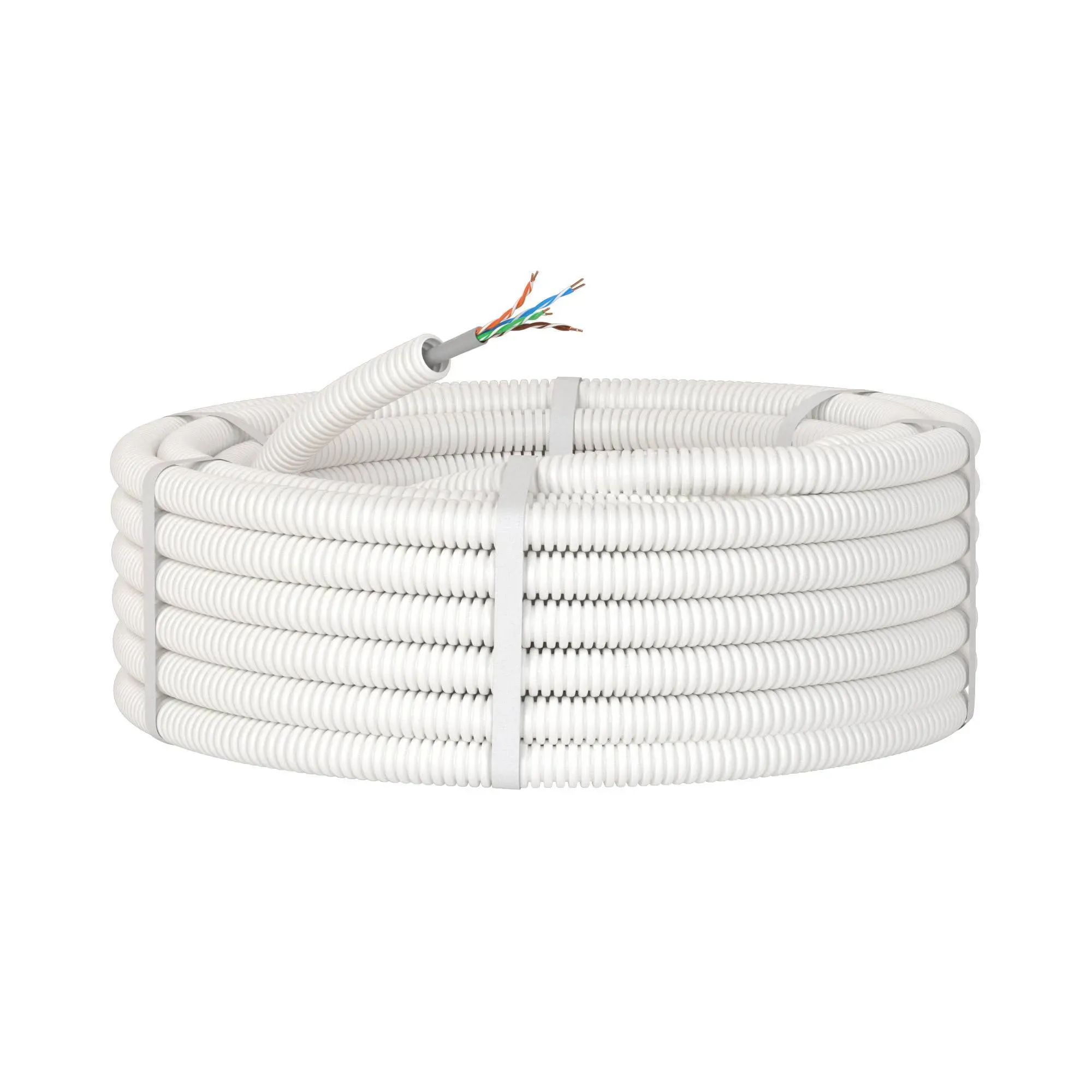 Элетротруба из ПЛЛ не содержит галогенов, гибкая гофрированна д. 16 мм, цвет белый, с кабелем витая пара 5EU/UTP нг(А)-HF, 100 м DKC 8EU816100HF 100м