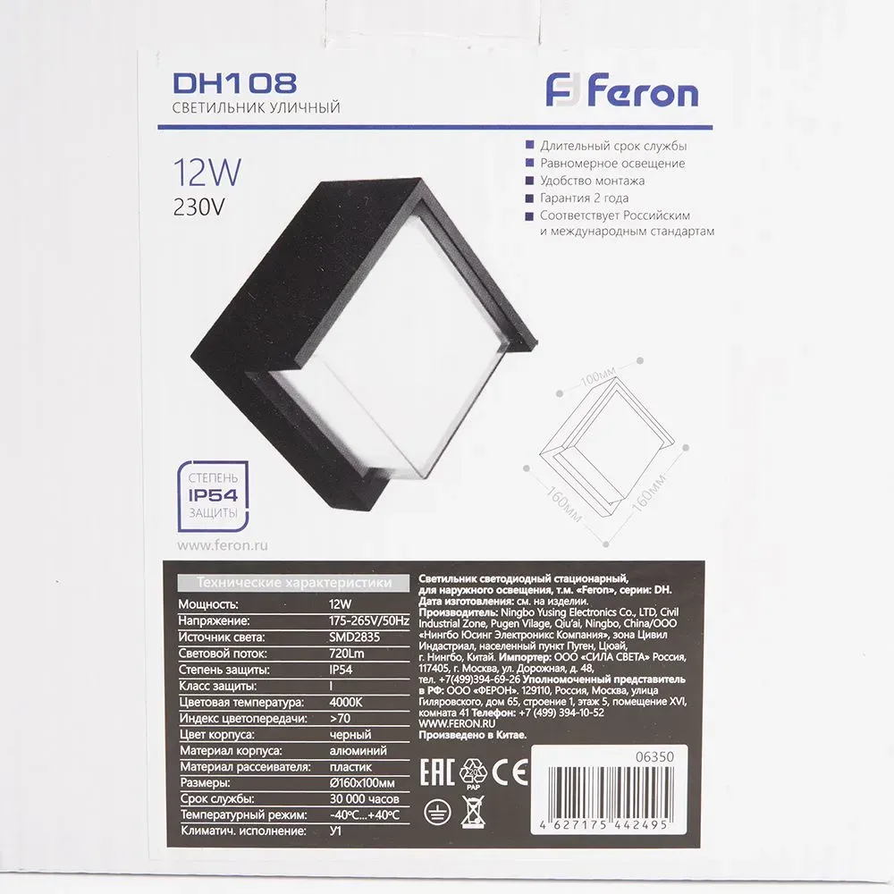 Отзывы о Светильник светодиодный уличный ДБУ-12w 4000К IP54 квадратный черный FERON 06350 )