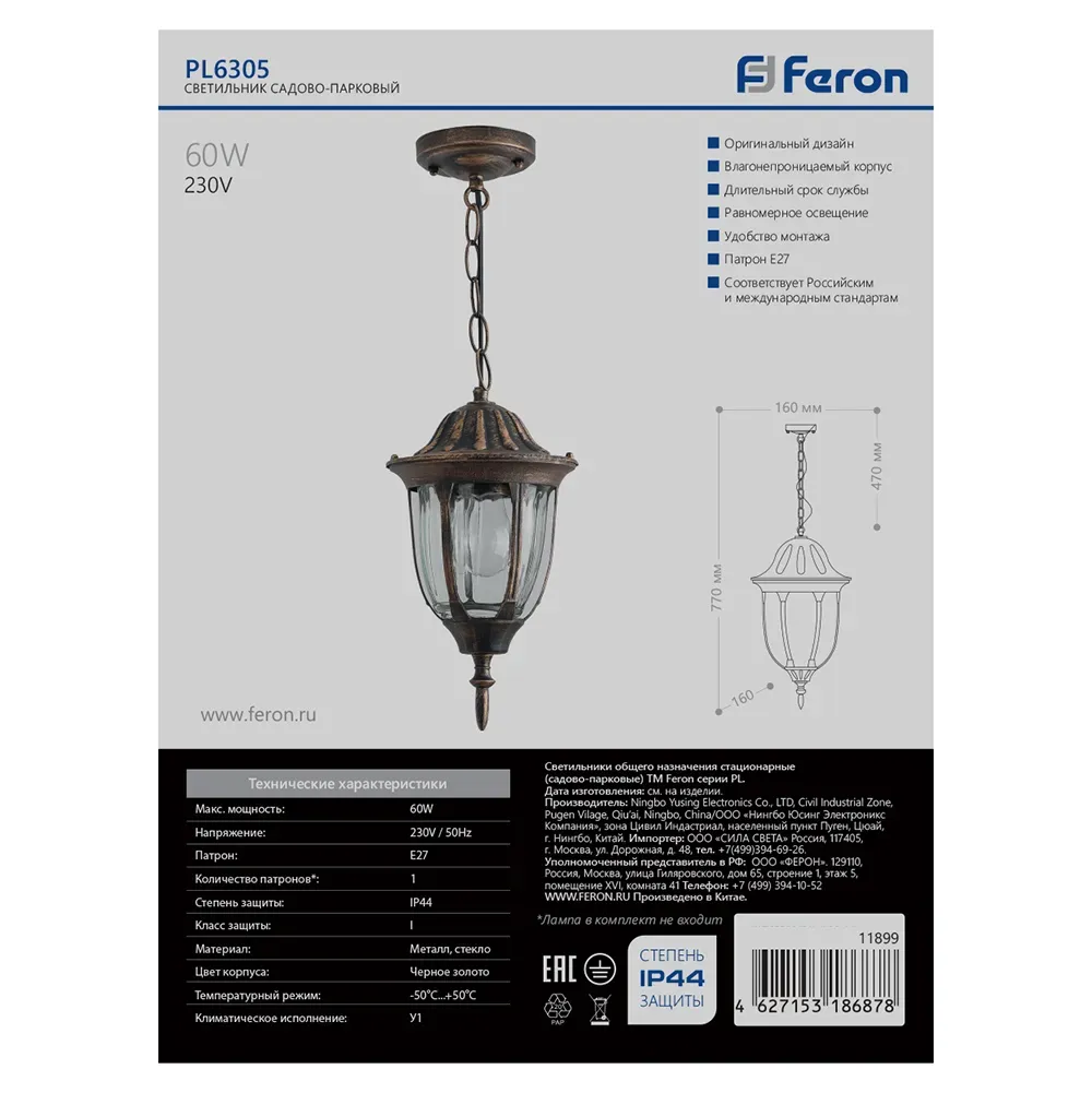 Отзывы о Светильник НСУ-60w цепь Е27 IP44 черное золото FERON 11899 )