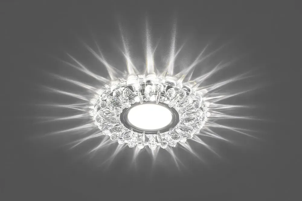Светодиодный светильник разработан специально для натяжных потолков и подвесных систем. Применяется как для декоративной подсветки, так и для основного освещения помещений. Особенностью новых моделей светильников является подсветка кристаллов при помощи светодиодной ленты расположенной по периметру светильника, что обеспечивает возможность отдельного включения светодиодной подсветки или лампы (при подключении к разным выключателям).