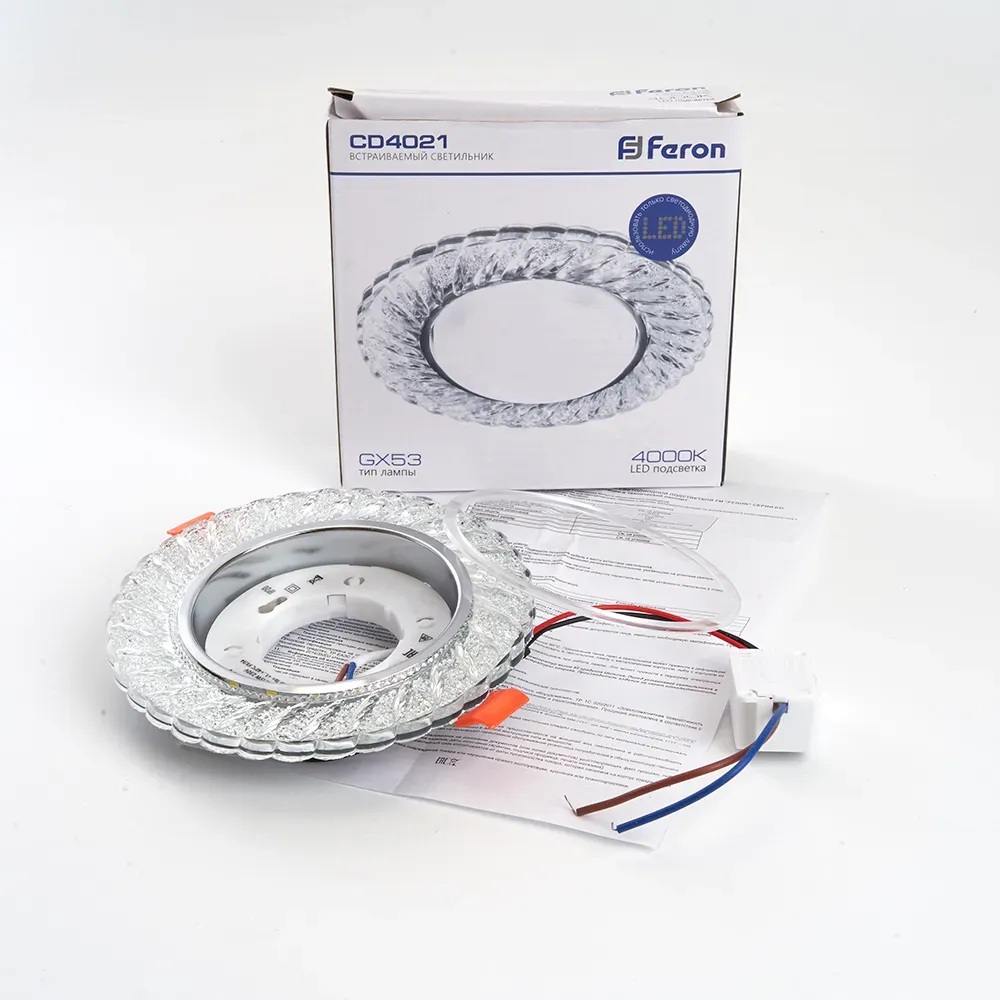 Отзывы о Светильник ДВО-15w GX53 без лампы со светодиодной подсветкой 4000К хром с прозрачным стеклом FERON 29474 )