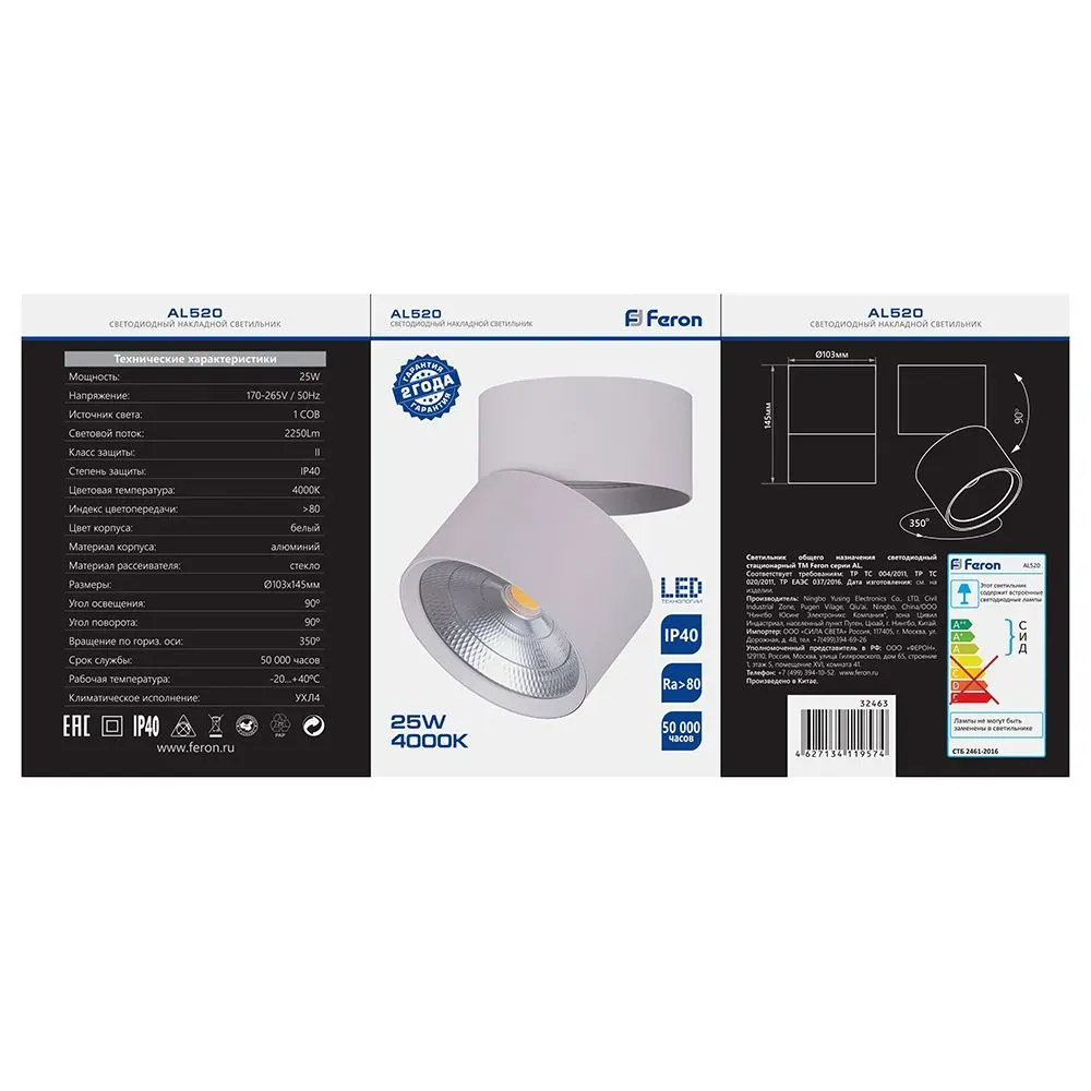 Отзывы о Светильник светодиодный ДПО-25w 4000К 2250Лм наклонный белый FERON 32463 )