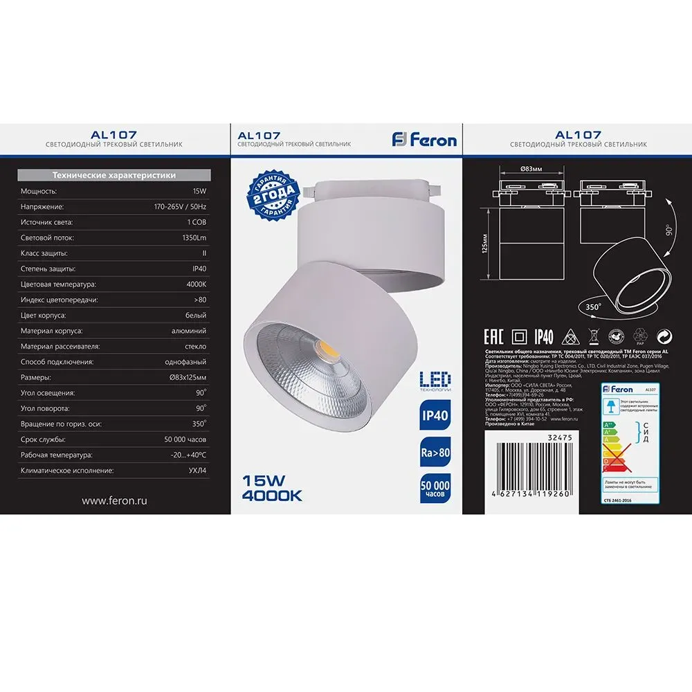 Отзывы о Светильник светодиодный трековый на шинопровод ДПО-15w 4000К 1350Лм белый FERON 32475 )