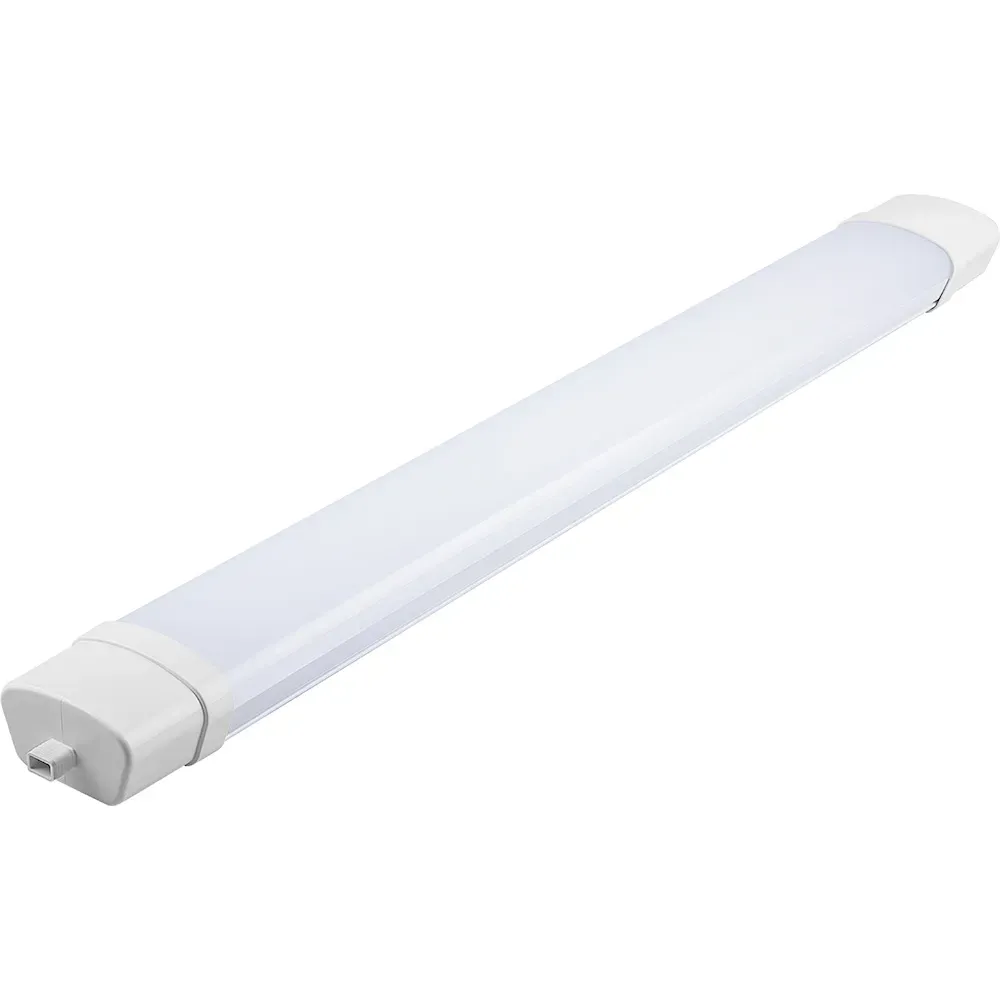 Линейный светодиодный светильник AL5095 ТМ Feron предназначен для работы от сети 230В/50Гц и используется для внутреннего освещения в помещениях с повышенным содержанием пыли и влаги. Например, в производственных и подсобных помещениях, коридорах, лестничных пролетах и пр. через соединительный шнур байонетное. Особенности - Стабильное яркое свечение 100 лм/Вт. Светильник имеет возможность соединения в линию двумя способами - байонетное соединение (стык в стык) и через соединительный шнур (в комплекте поставки). Прост в установке. Внешний разъем для быстрого, легкого электрического соединения без открывания светильника. Надежный драйвер с высоким коэффициентом мощности более 0.9 и с защитой от скачков напряжения. Наличие фильтра в драйвере светильника препятствует воздействию светильника на работу средств связи, теле и радиоприемников, устройств пожарной сигнализации. Цельный корпус из высокопрочного материала поликарбоната, выполнен методом соэкструзии.