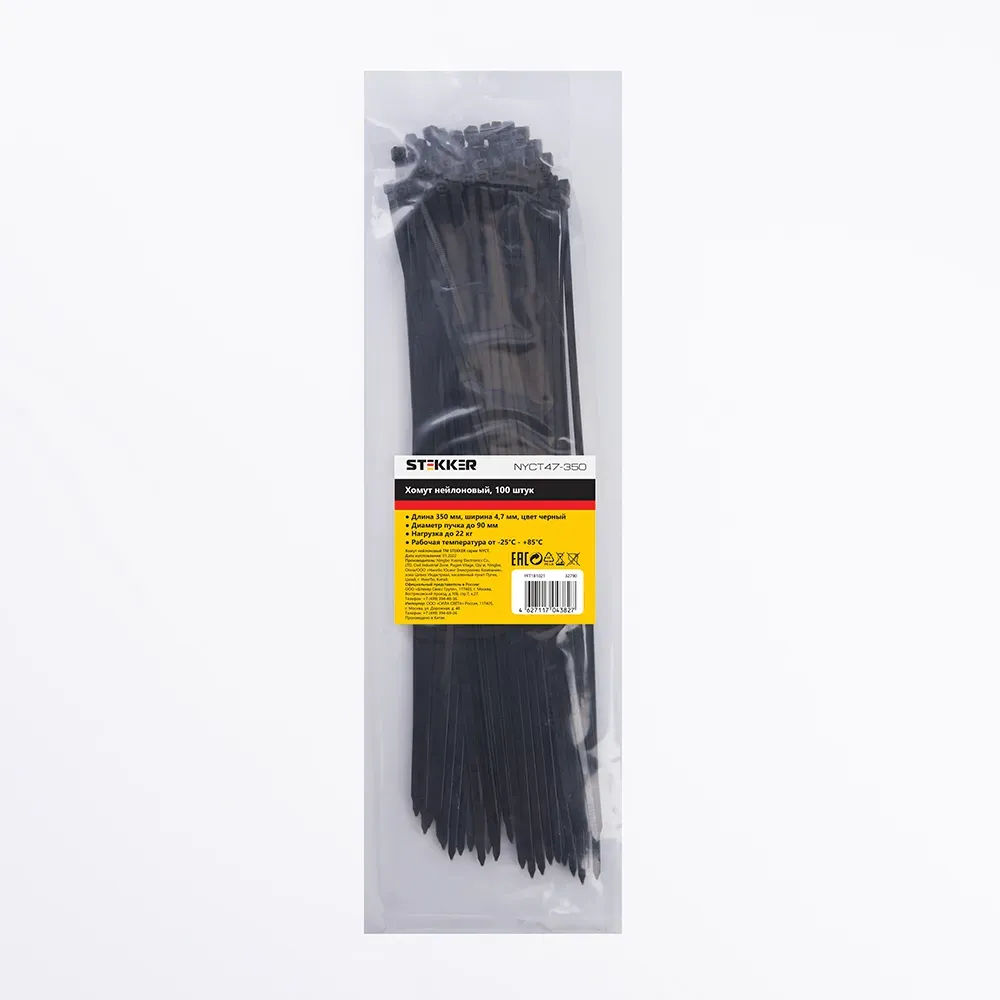 Отзывы о Хомут нейлоновый 4,7x350 мм, d пучка max 90 мм, нагрузка 22 кг, черный (100шт в упак), STEKKER 32790 )