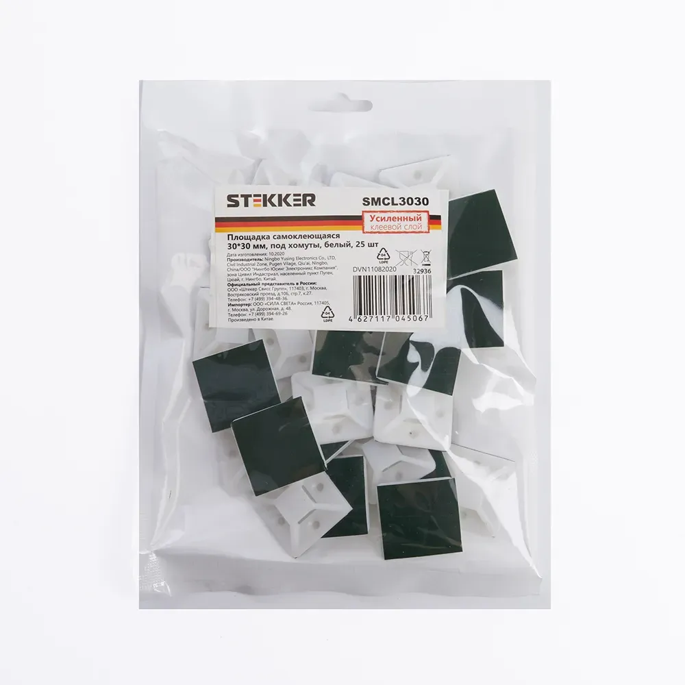 Площадка самоклеющаяся 30x30 мм, под хомуты, белый, STEKKER 32936