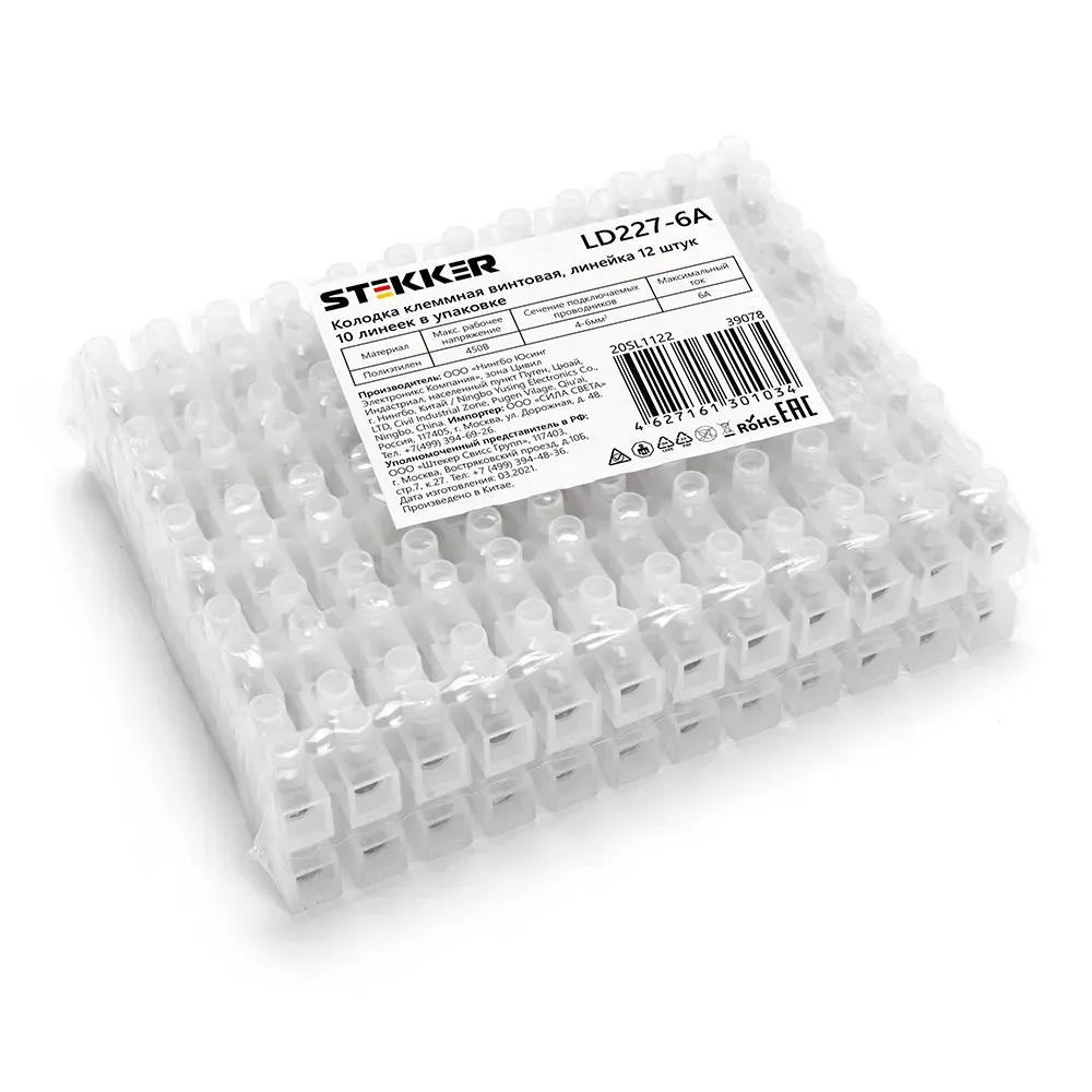 Отзывы о Колодка клеммная винтовая, линейка 12 штук, полиэтилен, STEKKER 39078 )