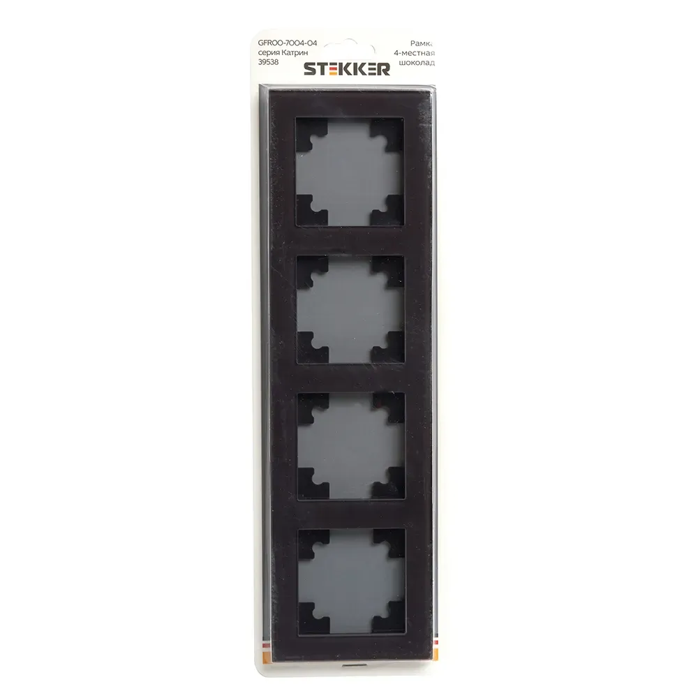 Рамка STEKKER GFR00-7004-04 на 4 поста. Материал - Стекло/ABS пластик, цвет шоколад, размер 295*84*9мм. Толщина стекла рамок составляет 3 мм, что придает рамке легкость и элегантность. Все пластиковые подложки выполнены в цвет стекла. Серия Катрин \'ТМ Stekker\' лаконичное и стильное решение для любого интерьера. Широкая цветовая гамма механизмов и стеклянных рамок позволяет реализовывать стильные решения и создавать уникальные акценты. Комбинации рамок и механизмов можно подобрать таким образом, чтобы создать уникальный ансамбль с освещением.