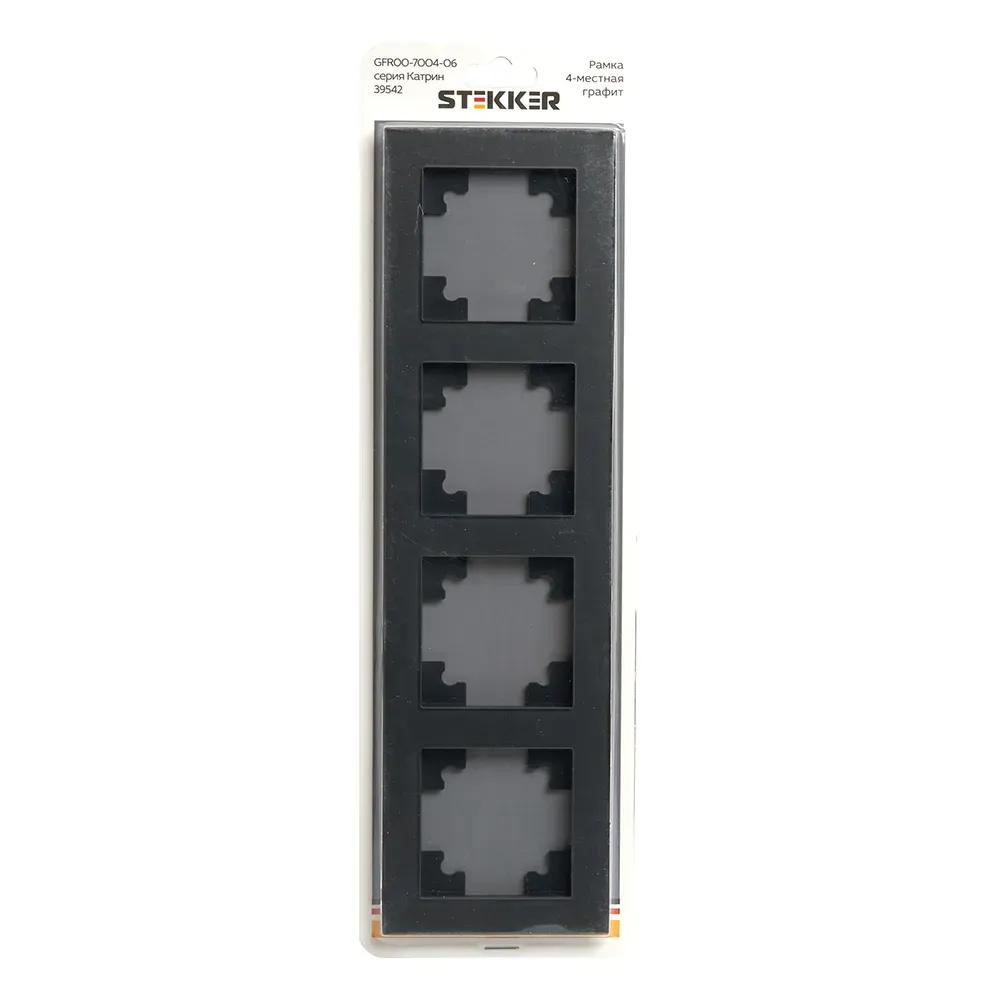 Рамка STEKKER GFR00-7004-06 на 4 поста. Материал - Стекло/ABS пластик, цвет графит, размер 295*84*9мм. Толщина стекла рамок составляет 3 мм, что придает рамке легкость и элегантность. Все пластиковые подложки выполнены в цвет стекла. Серия Катрин \'ТМ Stekker\' лаконичное и стильное решение для любого интерьера. Широкая цветовая гамма механизмов и стеклянных рамок позволяет реализовывать стильные решения и создавать уникальные акценты. Комбинации рамок и механизмов можно подобрать таким образом, чтобы создать уникальный ансамбль с освещением.