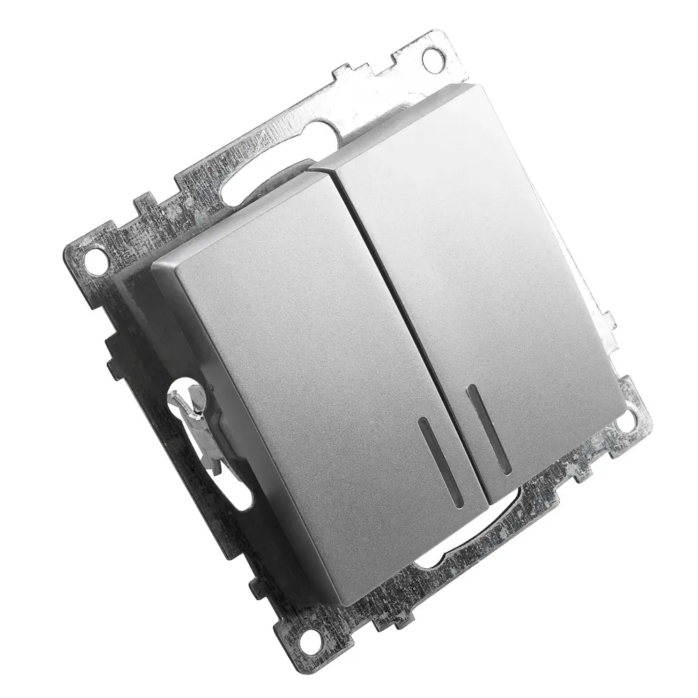 Выключатель 2-клавишный c индикатором (механизм) 250В, 10А, серия Катрин, серебро FERON 39579