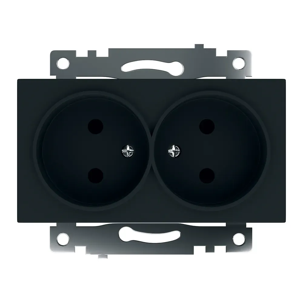 Розетка 2-местная б/з, серия Катрин, черный, FERON 39611