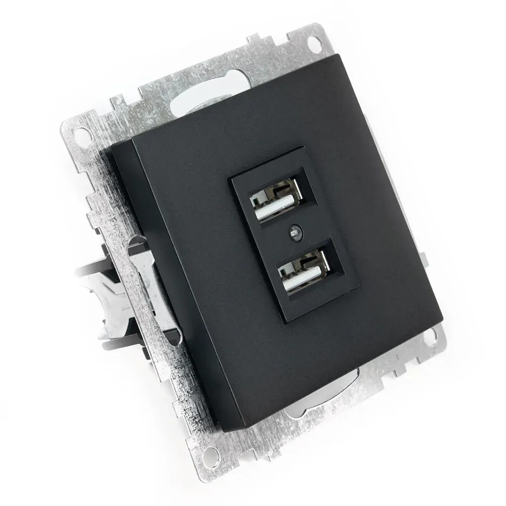 Отзывы о Розетка 2-местная б/з и с USB, Катрин, черный FERON 39616 )