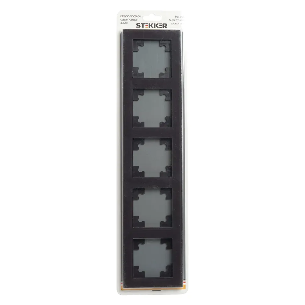 Рамка STEKKER GFR00-7005-04 на 5 постов. Материал: Стекло/ABS пластик, цвет шоколад, размер 368*84*9мм. Толщина стекла рамок составляет 3 мм, что придает рамке легкость и элегантность. Все пластиковые подложки выполнены в цвет стекла. Серия Катрин \'\'ТМ Stekker\'\' лаконичное и стильное решение для любого интерьера. Широкая цветовая гамма механизмов и стеклянных рамок позволяет реализовывать стильные решения и создавать уникальные акценты. Комбинации рамок и механизмов можно подобрать таким образом, чтобы создать уникальный ансамбль с освещением.
