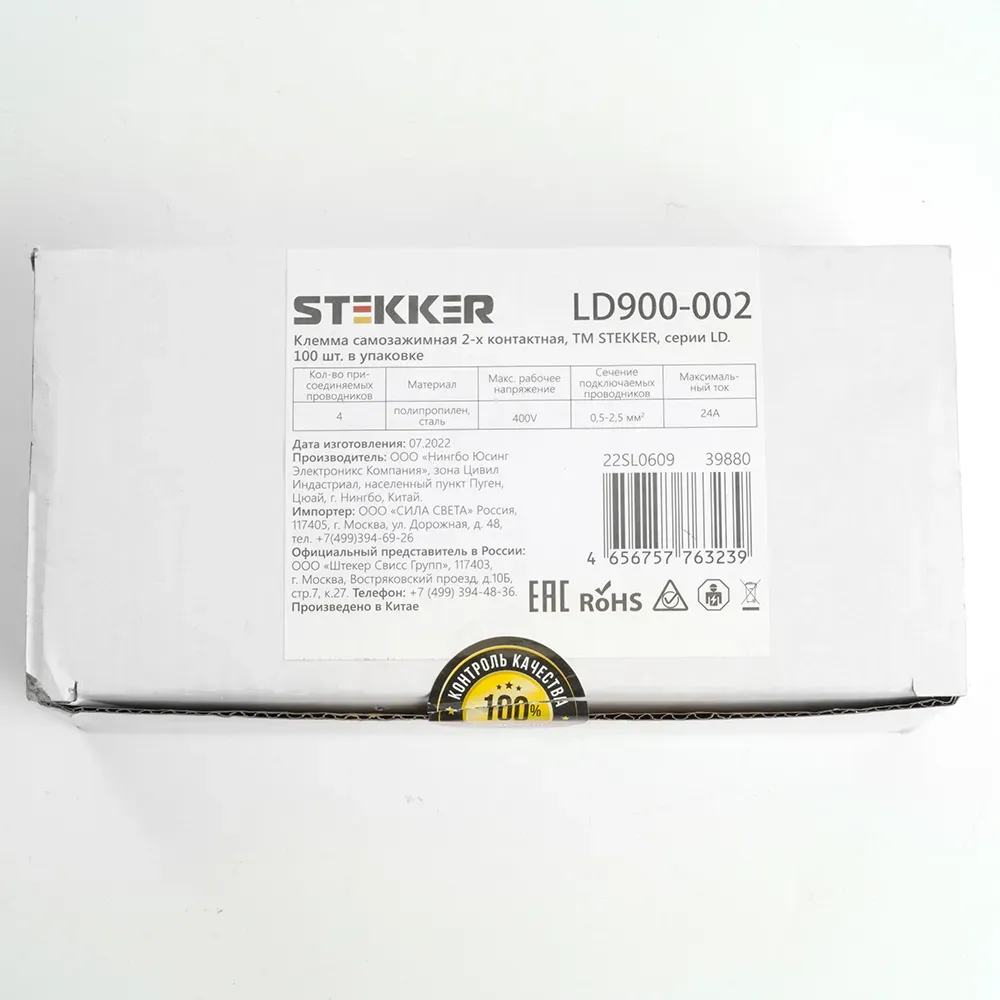 Клемма пружинная пружинная STEKKER LD900-002, 4-проводная 0,5-2,5 мм2, 250В, 4A, без пасты, материал изделия полипропилен, сталь. Тип провода одножильный/многожильный, материал провода сталь, температура окружающей среды -20...+40°C. Преимущества: - подходит для одножильных и многожильных проводов, - надежный пружинный механизм фиксации провода. Сфера применения: - строительство, - производство светотехники.