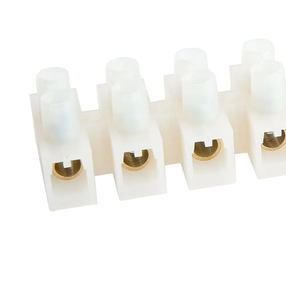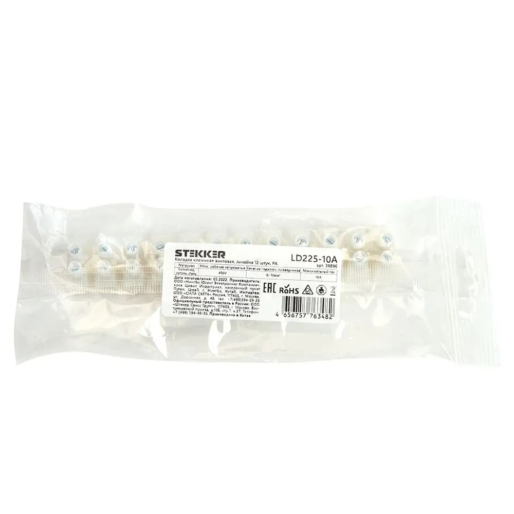 Зажим винтовой изолированный или клеммная винтовая колодка STEKKER LD225-10A, 12-проводная, 1 шт. в упаковке, сечение жилы 6-10мм2, 450В, 10А, без пасты, материал изделия полиамид, латунная токоведущая шина, стальной винт. Подходит для нескольких типов проводов одножильного или обжатого многожильного, материал проводника - медь, температура окружающей среды -25...+125°C. Изоляционный каркас изготовлен из негорючего материала. Выполняет 2 задачи: защита провода от повреждения и исключение возможн