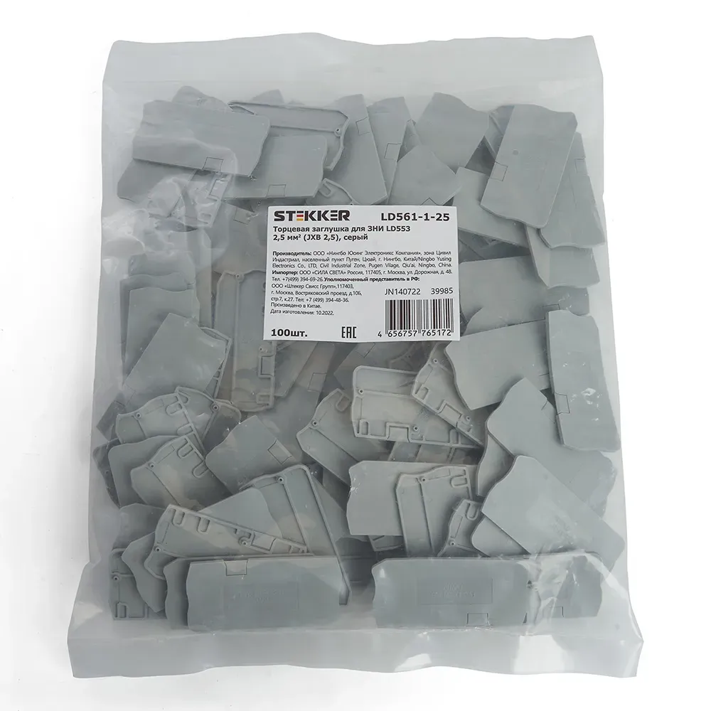 Торцевая заглушка для ЗНИ LD553 2,5 мм? (JXB ST 2,5), серый. Необходима для изоляции боковой панели клеммы ЗНИ. Применение - шкафы, щиты, сборки. Также для технологического оборудования в качестве комплектующих.