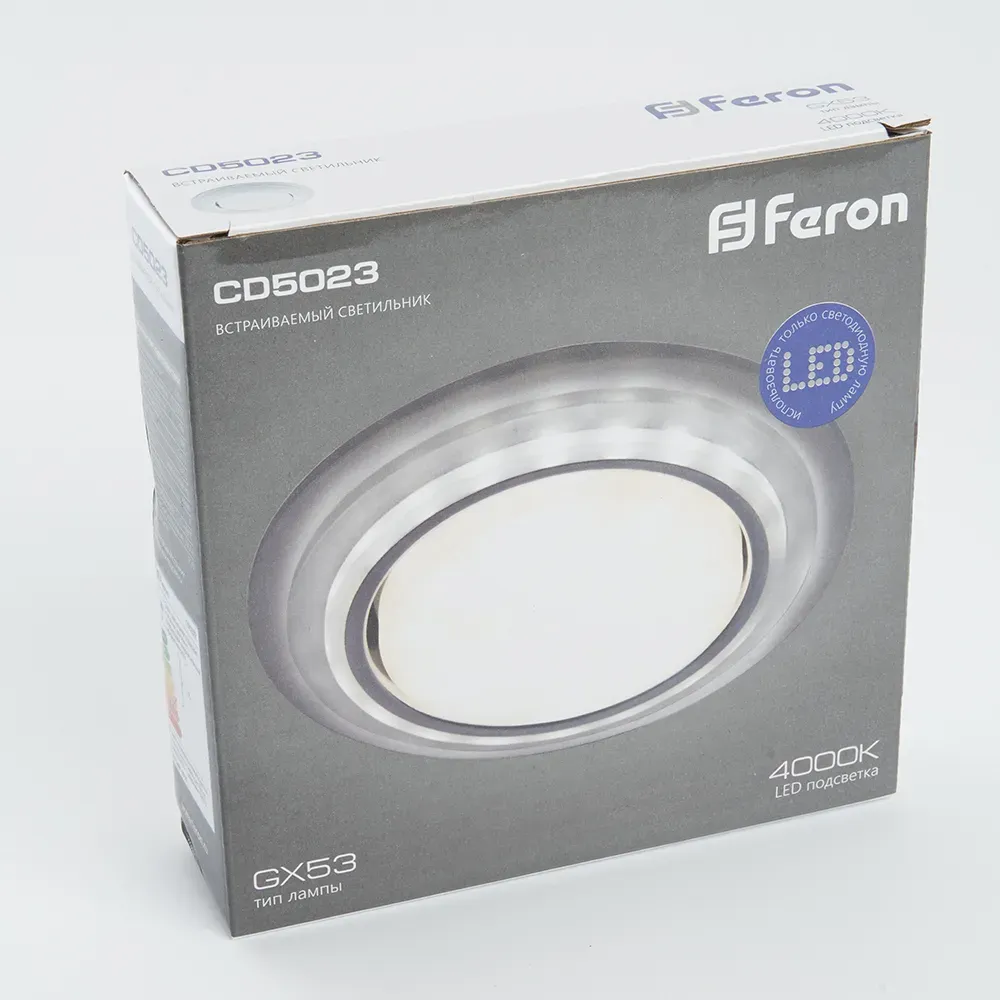 Светильник ДВО-15w GX53 без лампы со светодиодной подсветкой 4000К прозрачный хром FERON 40522