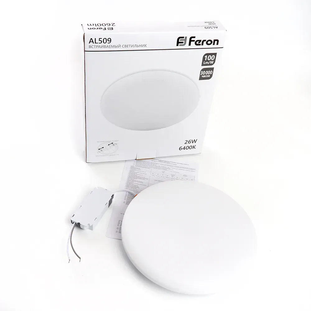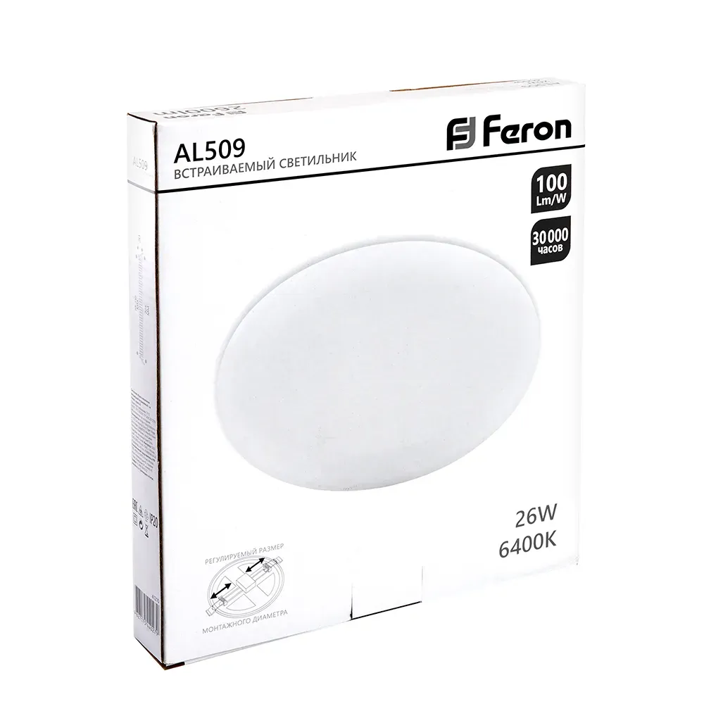 Отзывы о Светильник светодиодный ДВО-26w 6400К 2600Лм slim белый с регулируемым монтажным диаметром (до 170мм) FERON 41214 )